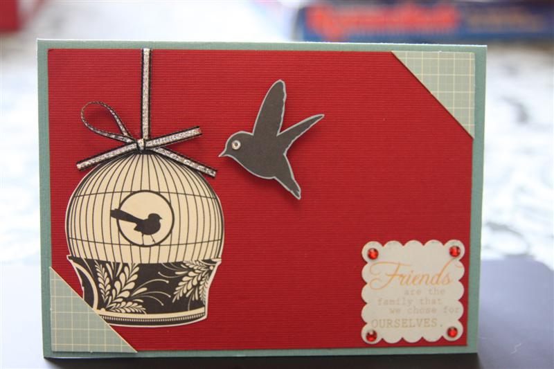 Hi all ! I’ve been at the market today, and it was freezing. My feet have only just thawed out. Most people were smart and stayed home where it was warm, so a quiet day, but still sold over 60 cards, so not too bad!Tonights card has a Bazzill cardstock base, and I have used kaisercraft Loire Valley papers to fussy cut the images. The friends sentiment is from inique boutique – memoirs – paper pad, ribbon is from my craft supply, and of course a bit of bling.