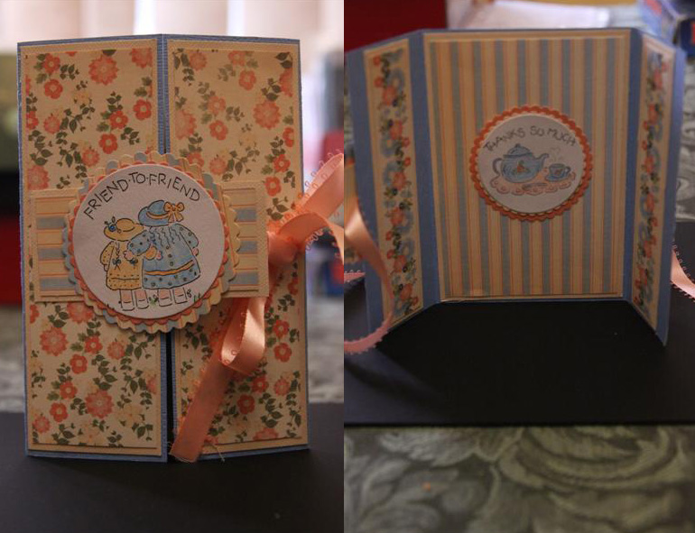Really quick post today as I have a work commitment. I got this design idea from a card Judith gave Kay for her birthday.The base is bazzill cardstock, the patterned paper is Kaisercraft tea at elsies collection. The stamps used were stampin up nice and easy notes, ribbon was from craft supply, and I used my cuttlebug and nestabilitie circles for the matting, gotta run see you tomorrow!