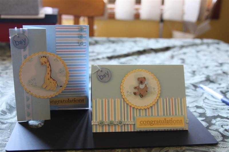 There are a lot of mens cards in this next group of photograghs, as I have been busy creating for Fathers Day, but I am going to try and alternate them with other cards, as I don’t want to bore you all to tears with constant mens cards. I think we all struggle with mens cards, but I don’t think it is entirely our faults, I believe it is quite hard to source mens papers, stamps, etc. What do you all think? What I really want is an Aussie rules stamp, with a football , goalposts, footy jersey and perhaps boots. Wouldn’t that be great – all our mens card problems would be over and you could make the cards up in all the different team colours!Tonights card is a baby boy card made with stampin up bashful blue cardstock and grant archival patterned paper ‘paper chic ‘ by Christine Re. I used a stampin up scallop edger, and stampin up stamp set “Congrats ‘. My craft supply had the button and ribbon. I also used my cuttlebug and nestabilitie dies.