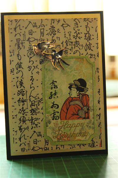 This is the third time tonight I have tried to update my blog. Seems ok now, but it was incredibly slow before, we must have used up our hours, so hopefully I will be able to update daily this week, but it might be a bit erratic. I will apologise in advance if thats the case! Tonights card was made using Stampin Up cardstock, Gold paper and stamp from my craft supply, and Bird stamp from Stampin Up -Eastern Influences. The patterned paper and tag are from the Kaisercraft ‘Lush’ collection. I stamped the lady twice, and fussy cut . I’m busy making some samples for my portfolio as I will be teaching a class starting in October at a new store that is opening here in Adelaide. It’s called Paper Flourish, check out the website for opening times and class details. find us at www. paperflourish.com.Til tomorrow….