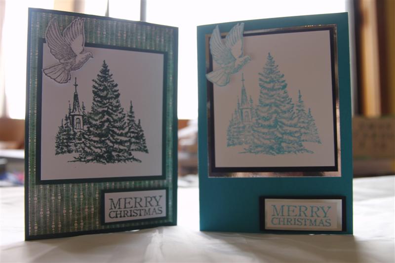 This is my favourite xmas stamp.The card on the left uses Stampin Up Handsome Hunter cardstock, and Whisper white, with some Basic grey Jovial snowball fight patterned paper. The card on the right uses Taken with teal cardstock .Both these colours are retired ( a shame – 2 of my favourite colours ,lucky I stocked up!). The stamp set is Stampin Up A wish for christmas, and the greeting is a kaisercraft stamp. I liberally spotted glue over the images and covered them in Martha Stewart glitter, which doesn’t really show up in the photo, but looks quite effective. The stamp pad on the cards corresponded with the coloured cardstock. Today I have been stamping images from my new stamp sets,Stampin Up Elements of style and Because I care, and I have coloured them in, and now will go and make up some cards with them. Til tomorrow….