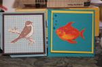 Tonight I thought I would show you my corner bookmarks. I made similar ones for the Stampin Up regional – swaps -. It is just a strip of cardstock 6cm by 21 cm folded in half and then folded again as if you were going to make a paper plane( like when we were kids!) stick down the seam, you will probably have to run a bit of ribbon or such to hide the join, then flip it over and cut 2 squares in contrasting card or paper, 7.5 cm x 7.5 cm and 7×7 cms and mount on the front . Now you will be able to trim the excess length and decorate the front with your favourite stamp. Remember to keep it flat for longer wear! Hope that is explained clearly, if not drop me an e-mail and I will try again maybe with pictures!Meanwhile, I’m still doing xmas cards – next year I’m going to be more organised and spread out the making of them throughout the year! Til tomorrow….