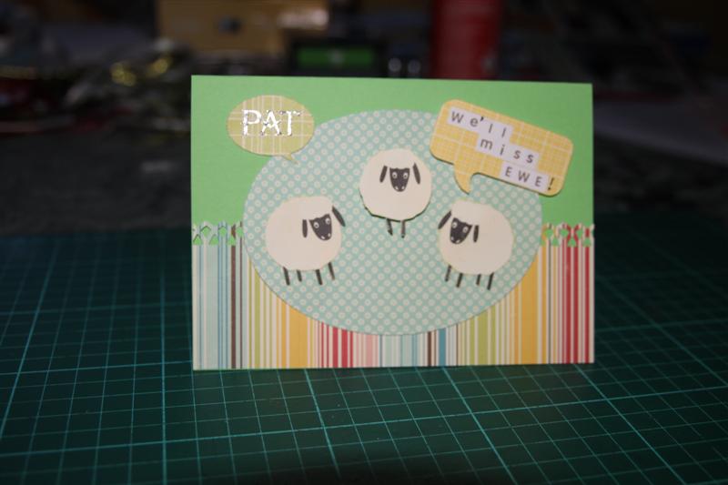 I made tonights card for a loyal customer at work who has been visiting us almost daily for many years, but is moving to the country with her family, and we will miss her lots! She loved her card, and I enjoyed making it – just my style of card. I used stampin up cardstock – Green galore, and October Afternoon patterned paper.I fussy cut the sheep out of the paper. Tonight I am playing with my Websters pages patterned paper, still on my mission to reduce the ammount of patterned paper I am holding, as next months Kaisercraft papers are gorgeous, and I have to make room for them!Til tomorrow….