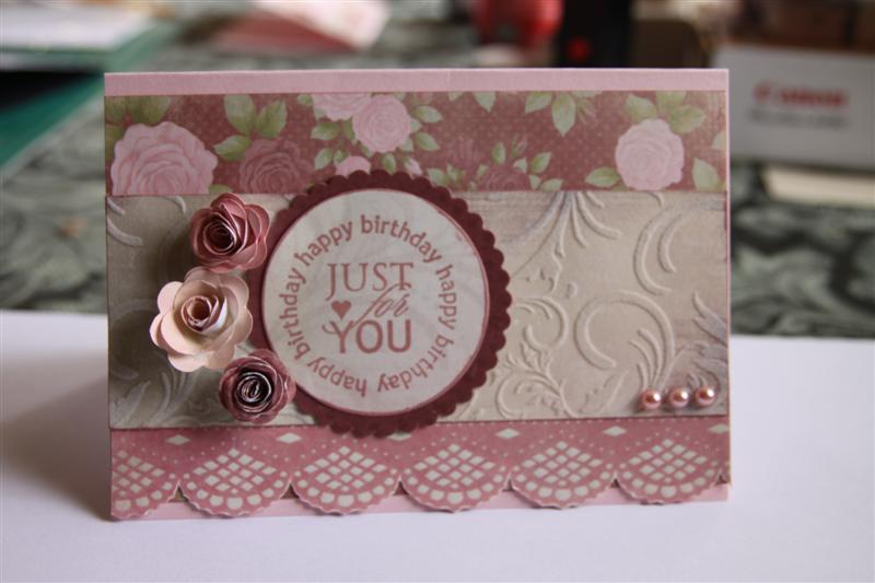 Todays card uses Stampin Up cardstock – Pink piroutte, and kaisercraft English Rose 6″ pad and pearls. I made the flowers with a sizzix die – an investment worth its weight in gold! I used a stamp it stamp for the greeting. I have one more card to show you  using this paper, and then I promise no more! I love this series of papers and will continue using them until Mothers day, but I will keep the cards to myself. I have so much new patterned papers that I want to play with including the new Steampunk debutante from graphic 45 so there will still be plenty happening on the blog! Til tomorrow….