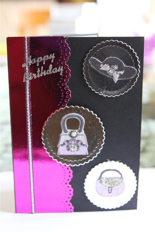 A very early post today,as there is something technical that has to happen to the computer today apparently. This card was made using a base card of Stampin up cardstock, and then anything blingy I could stick to it! I fussy cut the bags and hat from a scrap piece of patterned paper that I had hanging about. Til Tomorrow…