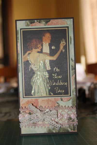 I’ve had a good day in my craft room today, and planned out my next lesson, and made a few cards too. Todays card uses Graphic 45 Le Romantique paper, Stampin Up cardstock – Early espresso and Baja Breeze and a bit of Ribbon and lace and a stick pin which is in the knot of the lace but I don’t think you can see it in the photo. I have a couple of orders to do now, so til tomorrow…..