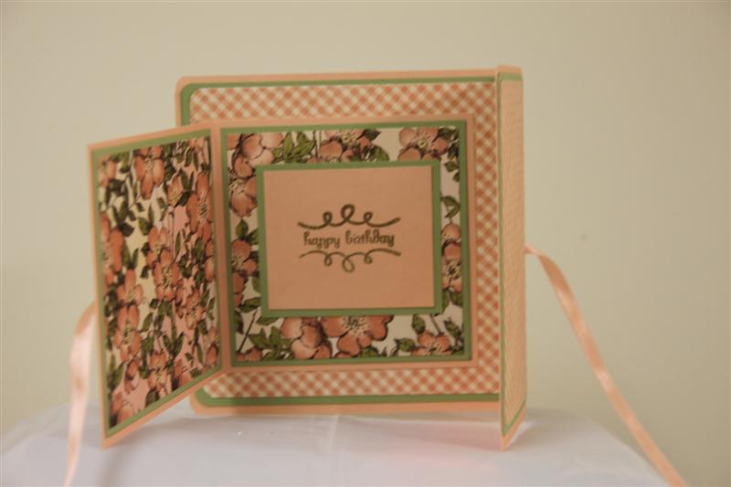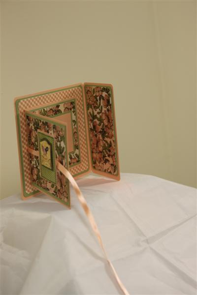 3 views of this card tonight, so you could see all the panels involved in it. Otherwise a simple card, only using Bazzil cardstock and Graphic 45 Once upon a springtime collection. I loved this paper so much I had to go back and buy more, So there will be more cards made with this when I get a free minute!The weather is cooler today, so I am itching to get into my room, my mind is buzzing! Til tomorrow….
