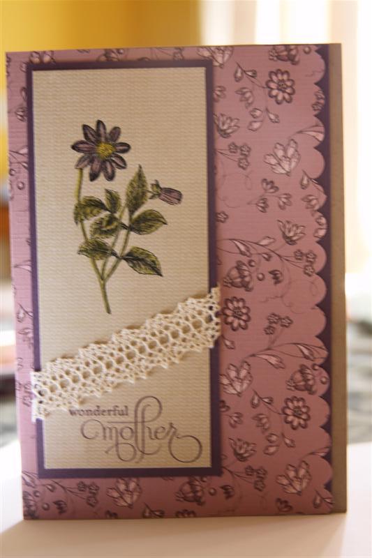 Todays card is an exact copy of yesterdays card, but I have swapped Riding hood red cardstock with Perfect Plum. All other supplies are the same.Looking forward to doing some major cardmaking over the next couple of days, as I haven’t done so much this week! Til tomorrow…..