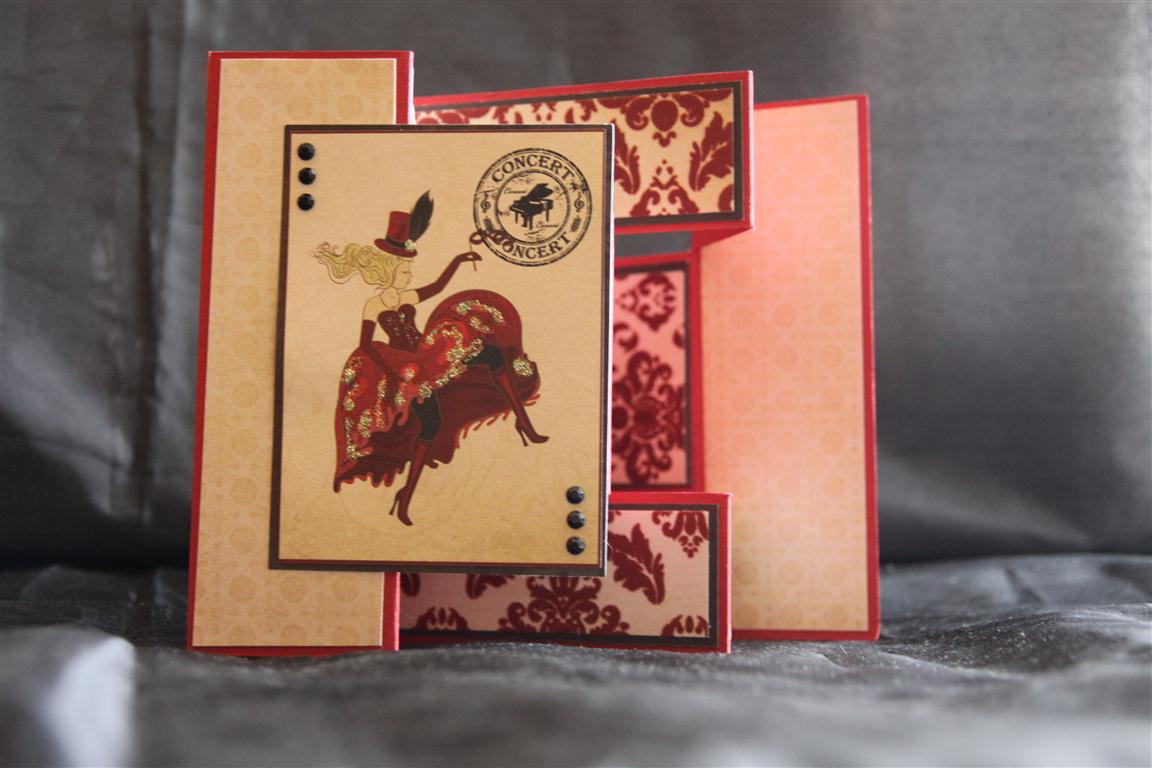 When I saw Kaisercrafts new papers – Velvet Ensemble – I immediately thought they were terrific for mens cards, but the first card I made with it was this one. The Dancing Lady image comes on a sheet with quite a few other images, was its really value for money.The only other thing I used here was some kindyglitz, and Stampin Up Riding hood red cardstock.Today I’ve been making mens cards, and thinking about Fathers day cards.Over the next couple of weeks I’d like them finished so I can start on xmas! Til tomorrow…..