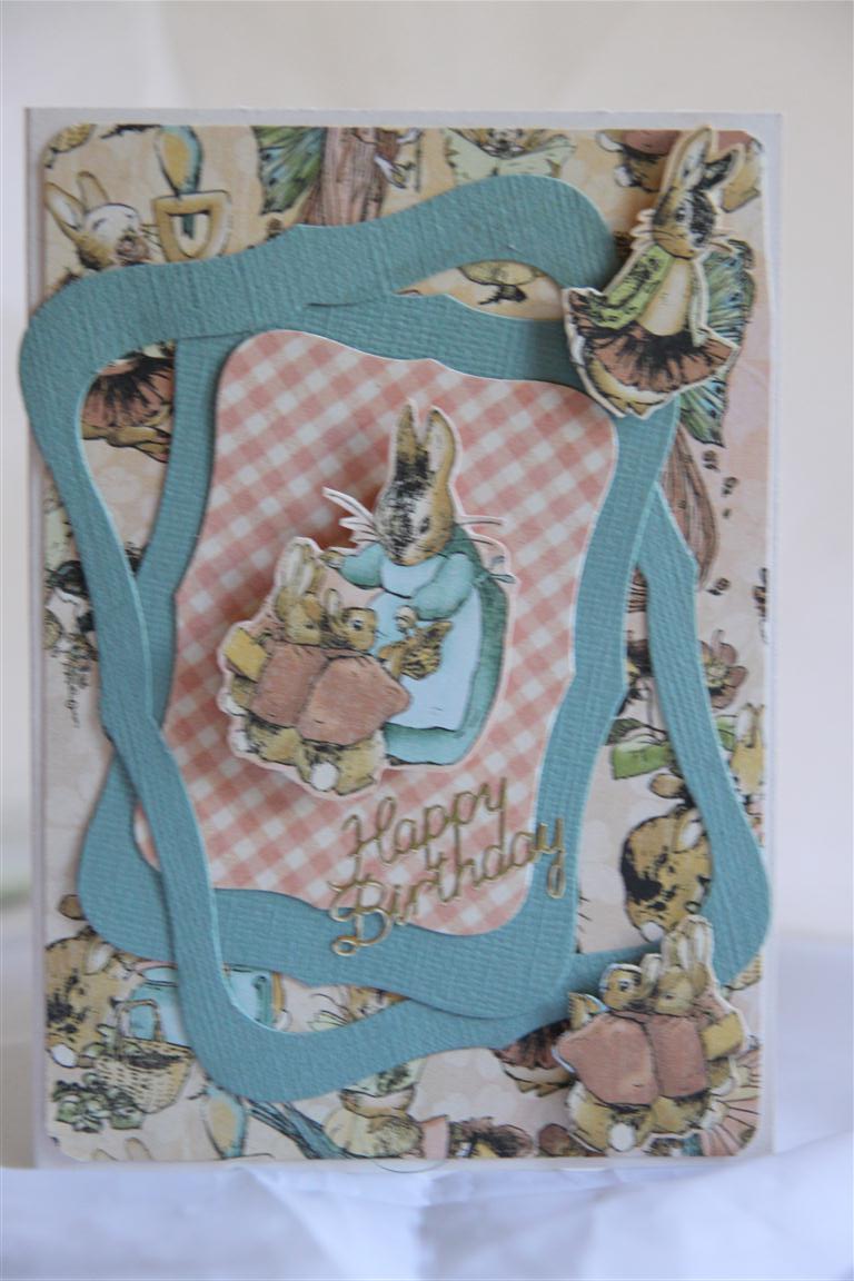 For this card I did a bit of fussy cutting – there are lovely peter rabbit images on this paper – Graphic 45 Once upon a springtime. I also used my nestabilities labels 8 dies, and some bazzil cardstock. I will hit the card room tonight for a little while, to relax after my busy day at work, but no clear project in mind yet! Til tomorrow….