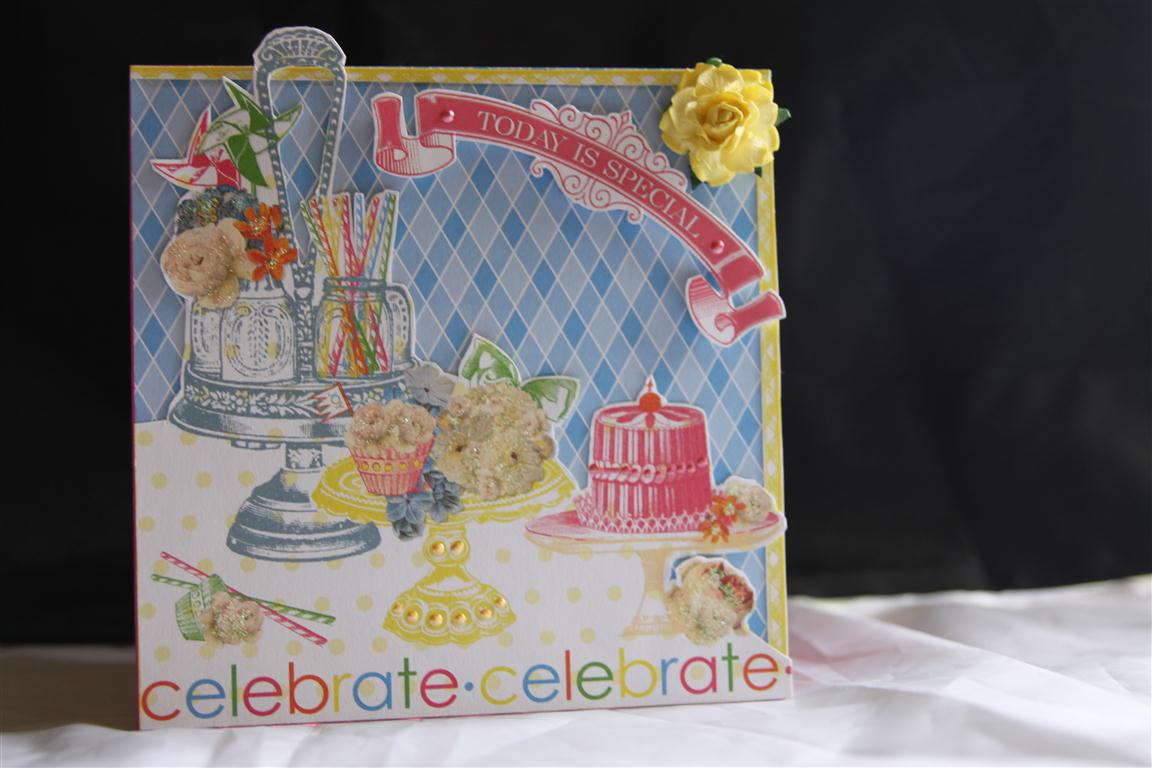 Todays card is simply made with Websters pages Lets celebrate, and a bit of fussy cutting. I added a little sunflower liquid pearls, and a yellow flower, but thats all! Today I have been stamping and colouring christmas images, from my new stamp set from stampin up, and this week end I will get Nathan to photo them so that I can post. Til tomorrow…..