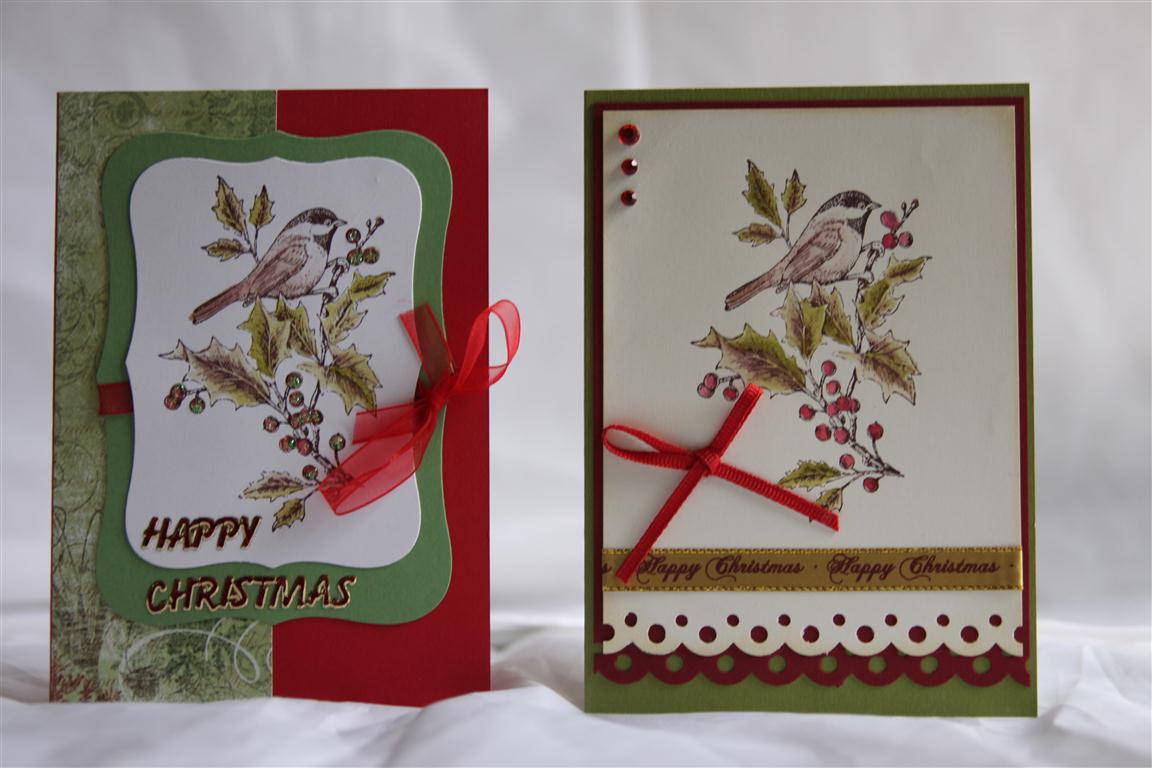 I thought it was time to share some xmas cards,which is what I have been working on this weekend. These ones were made using my new Stampin Up stamp set – Beautiful season. I stamped in choc chip ink, and coloured with Cherry cobbler and old olive ink and an aquabrush. The cardstock is stampin up, and I also used Nestabilities label eights,a Martha stewart punch, and some ribbon.I have done my first scrapbook layout this weekend as well – last night I was at a Paper Flourish staff party, and the whole have a photo taken and then do a layout was sprung on us, but it was very enjoyable and did drag me out of my cardmaking comfort zone. when I have added the photo, I will get Nathan to photo it so i can show you all! Til tomorrow….