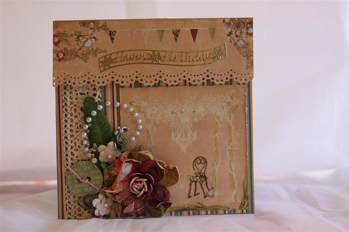Todays card was made using Websters pages Garden gala paper, with the addition of some flowers,a leaf , bling flourish and a bit of lace. I added some layering, and there you are, a card with a bit of a vintage feel! Very busy at work with 6 am starts, so a bit tired in the evenings, and not much crafting happening through the week. Bit sad…. til tomorrow….