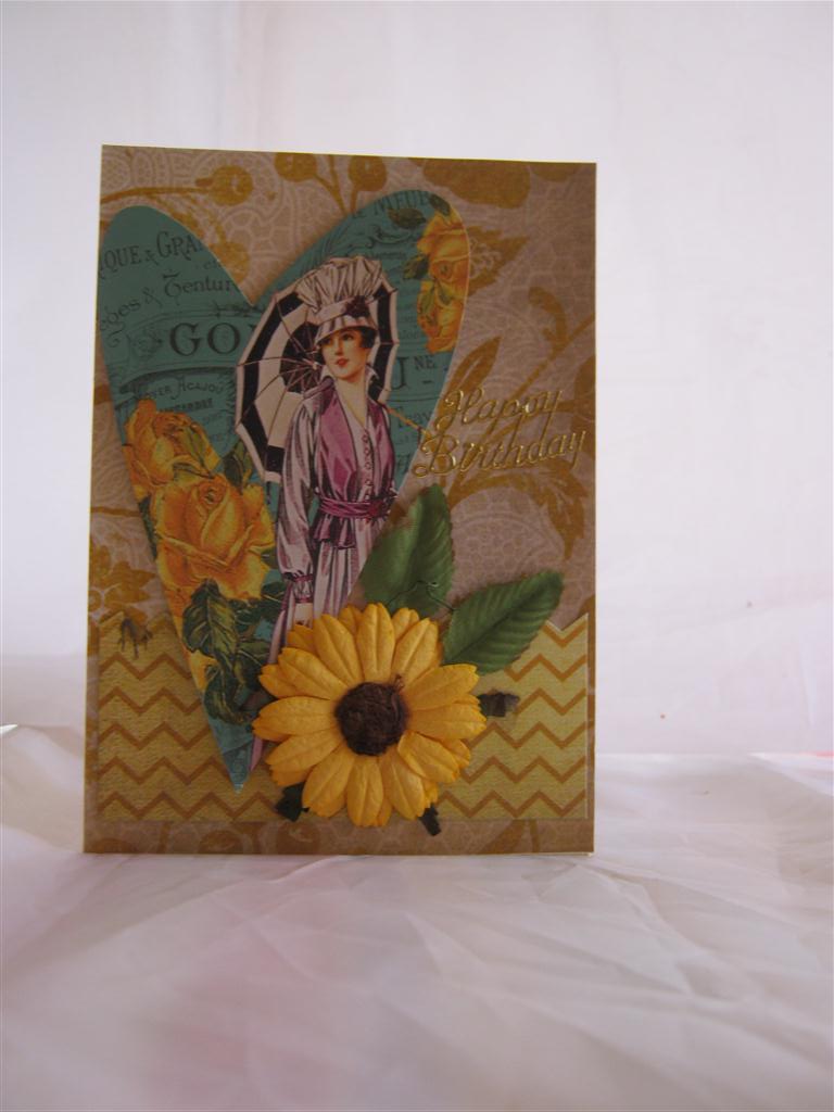 This is a paper company I hadn’t heard of before, But I always like to try new products, so I bought a few bits and pieces, and here we are – It is Glitz designs, Dance in Sunshine, and I also used the matching Whatnots, which is a pack of bits and pieces that match the papers. Just added a flower and a couple of leaves to finish. Today I have spent 31/2 hours in the craft room and made … 2 cards! Now, normally after that amount of time I would have had a bit more to show for my time, but on these two cards I used every electrical gadget I have including my Cricut,sewing machine, heat gun and then the cuttlebug and lots of ribbons, buttons, flowers,lace,inks, distressing gadget and even went rummaging around in late Grans sewing box for press studs – (remember them?) I will show as soon as Nathan photos them… Til tomorrow…..