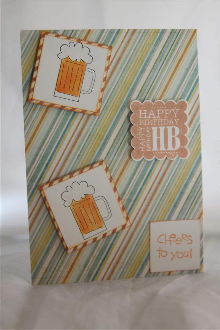 Another male card! I have used a Stampin Up stamp set – Cheers to you that was one of my first purchases from stampin Up to create this one, and teamed it up with My Minds Eye Be Amazing 6″ paper pad, a recent purchase. I coloured the stamped images with twinkling H2O’s.A quick and easy mens card. I had alovely day today over at the retirement village where we conducted our annual Mothers day cardmaking for the troops. The ladies did a great job, and when I left the count was up to 60 cards made and ready to send.I will be in the card room tonight doing a couple of orders,. Til tomorrow….