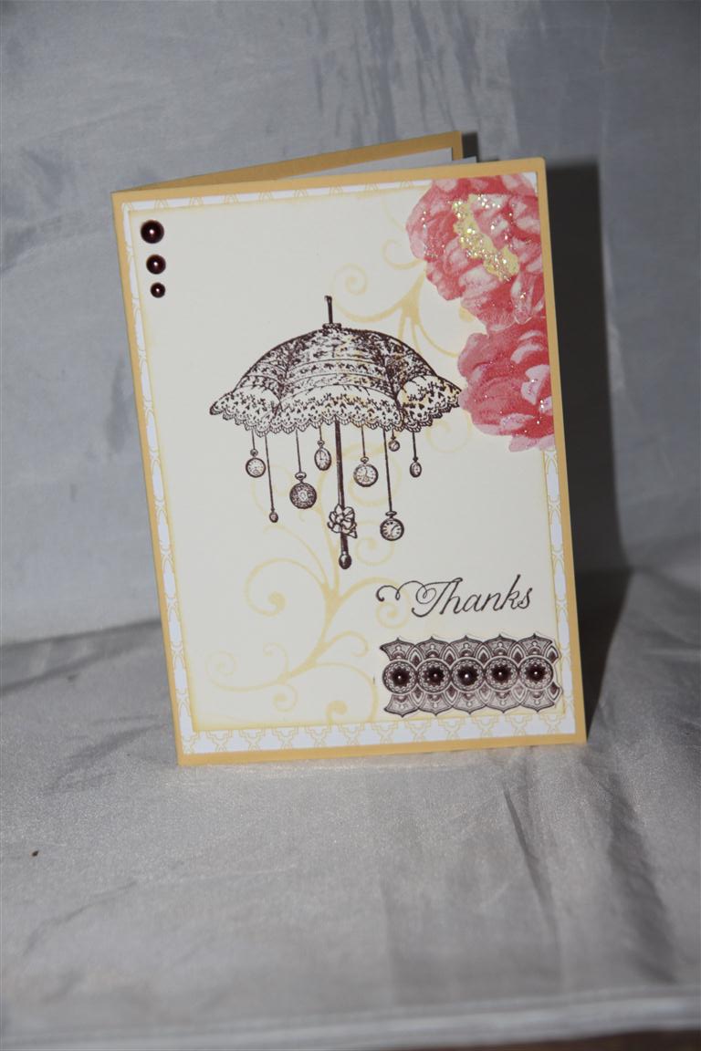 here is number 2 in my Stampin Up Rue Des Fleurs stamp set series. I also used Stampin Up attic Boutique designer paper, and so saffron an very vanilla cardstock. I stamped with choc chip ink, and added a few Kaisercraft pearls. You will notice a flourish design on the very vanilla cardstock – that was created by sponging so saffron ink through a piece of paper that I had previously die cut a die-namics fancy flourish from – I just used the waste as a stencil… nothing wasted here! Til tomorrow….