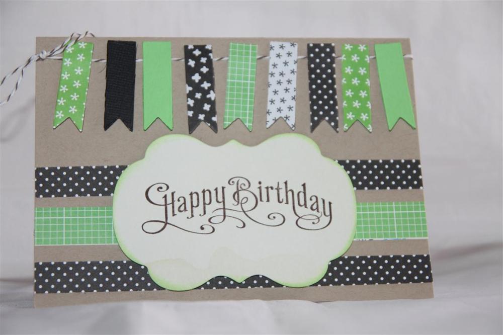In keeping with my personal challenge of trying to make a male card from each product collection I purchase, I made this card with my american crafts Amy Tangerine Sketchbook papers. No mean feat when the papers are so bright and girly! I die cut some banners using my spellbinders Lacy pennant die, and the label was die cut using spellbinders Labels fourteen. I stamped the sentiment with stampin Up Perfectly Penned, and layered it all on Stampin Up Crumbcake cardstock. I just cut strips of different paper for the base – another good way to use up scraps! One more day at the craft fair, then quite a few weeks refilling by boxes! Til tomorrow….
