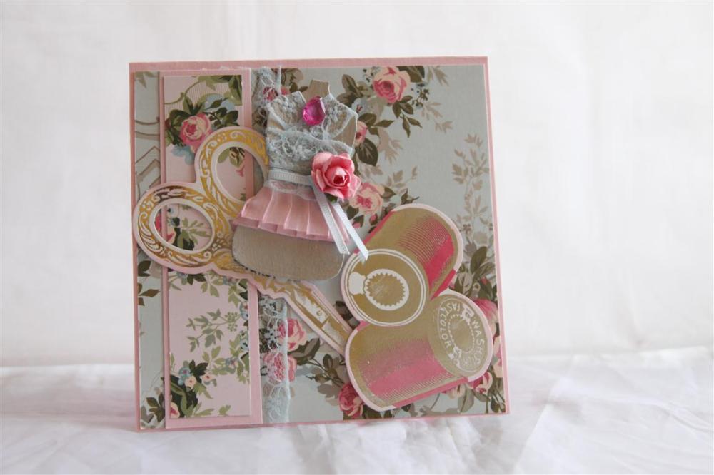 We appear to be all over the place with my postings but I have a few cards that have missed being posted, and I am trying to tidy up my folders. so, this one is a card made from Anna griffin paper and matching embellishments( Number 5 apparently)I used a spellbinders dress form die as well, and decorated it ( the most fun) with ribbon, lace, a flower and bling.The cardstock is Stampin Up Pink Pirouette.I have a true mess on my craft table today – I am playimg with a new kaisercraft collection, but will have to pack it up for now to plan out a lesson for my ladies at the retirement village this Friday – never have I left a lesson plan this late, but I have been busy with a few commissions which are now completed. Til tomorrow…