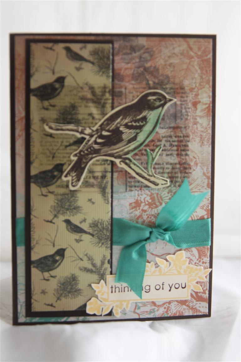 Here is another kaisercraft collection that I purchased last month, but due to the volume of christmas cards I have made, I haven’t had time to fully explore. I have managed to make a couple which I will post today and tomorrow, hopefully I will get back to it soon… collection is Kaisercraft Periwinkle, and I have also used the matching collectables here. The cardstock is Stampin Up early esspresso, and the sentiment is also stampin up. I tied a big ribbon for a bit of added interest, and sponged the bird in a matching shade to tie it all in. I am in the craft room today, have made another 10 cards using kaisercraft turtle dove – that brings the total up to 40! great collection.I am not going to photo them as I think you are all over that particular collection. I have moved on to boys cards, and will be photoing them. Til tomorrow…