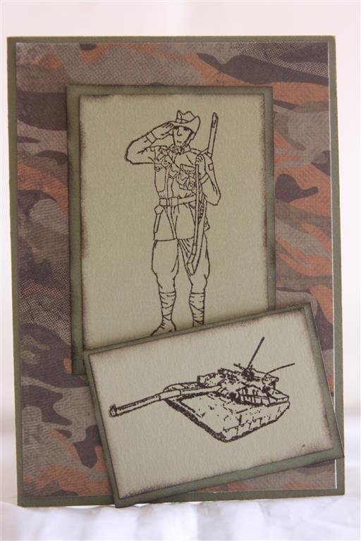 Paper – Kaisercraft Attitude, Stampin Up cardstock, Paper xtra military stamps by Sullivans.