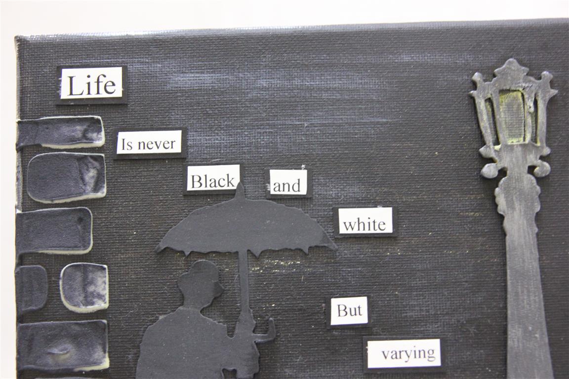 I am going to be MIA for the next few days – My sister and I are leaving all the males we are surrounded by in our families and going on a girly road trip down the coast to Robe. We are looking forward to a lovely relaxing time of good food, lots of fresh sea air to blow the winter cobwebs away and hopefully a little sunshine! So today I have posted a canvas art I made instead of the usual card. I painted my canvas black and added a few strokes of white to vary the background a little. I had left a little patch without paint which I sprayed with Dylusions spray in yellow. I die cut some thick chipboard using my Tim Holtz sizzix umbrella man and lamp post, painted black and then swiped a little more white. I used a stencil for the brick wall, and some texture paste and once again painted roughly black. I typed the sentiment on the compter, and matted each word with black cardstock. Something completely different for me – not a ribbon or bling in sight but I always knew I was going to do something a little different with my umbrella man – I love him! Til Monday, keep safe…..