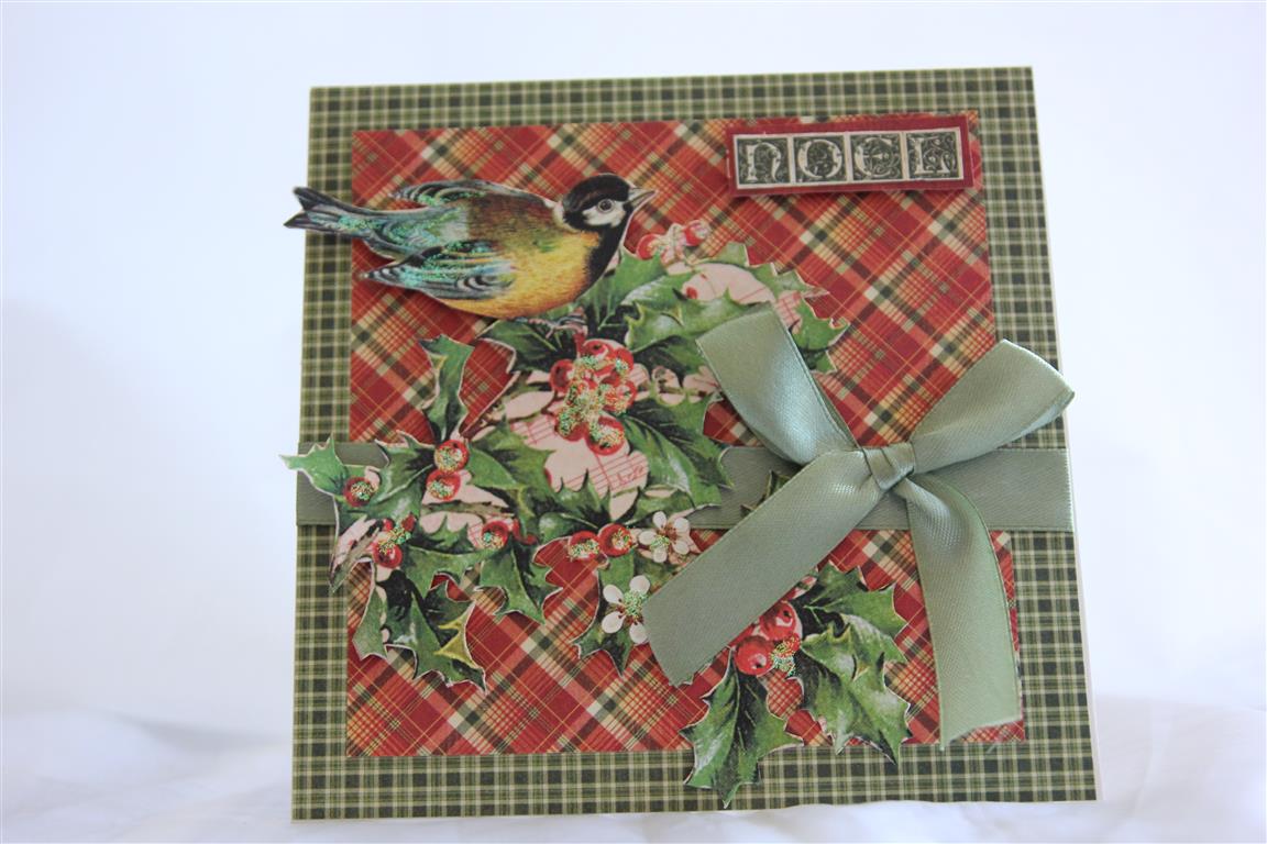 IMG_6086 (Medium)Graphic 45 12 days of christmas 12 x 12 papers. this one is a favourite, I had great fun fussy cutting the bird and holly, did some matting, and added a green ribbon.Great lesson this morning, nice and relaxing, ready to enjoy a weekend of crafting now that the working week is over! Til tomorrow….