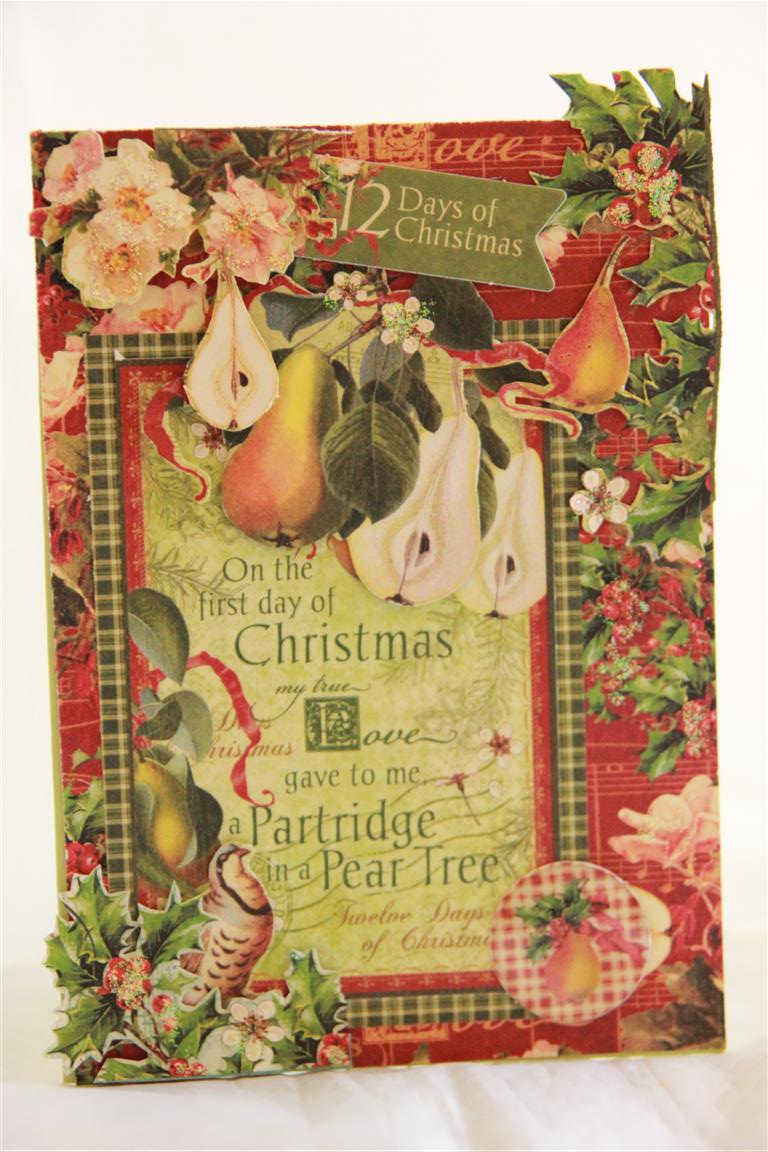 For this christmas card I used the 8 x8 pad from Graphic 45 – 12 days of christmas, and the matching chipboard pieces. Quite a bit of fussy cutting and some layering on this one!a bit of kindyglitz to finish, and no ribbon for a bit of a change…one more in this series, and then we will move on to something else.I have been busy with house work today, but I am off now to the craft room for a couple of hours – some lessons to set up for january, seems so far away but will be with us before we know it.Til tomorrow…