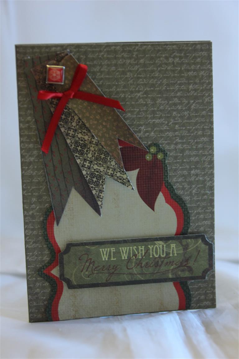 Here is another idea to use up those little strips of patterned papers. I have cut some banners and grouped them together with a decorative brad, but you could string them across the top of the card for another look. a message die cut and ribbon was all that was needed to finish! tomorrow we will look at scraps that are a little bit bigger! til tomorrow….