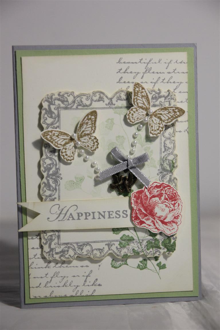 IMG_8575 (Medium)Every now and again my ink pads call to me, and I stamp my heart out! This happened the other day with this stamp set from stampin Up. It’s called Papaya Collage, and all the stamped elements on this card ( except the sentiment and script in the background ) came from this set.I layered up a couple of pieces of cardstock,and stamped and fussy cut until I was happy with the result.I added a dove charm, ribbon bow and pearls to finish. Today has been another stamping day – christmas this time -and next week when I am on holidays Nathan and I will do some photoing.Til tomorrow….