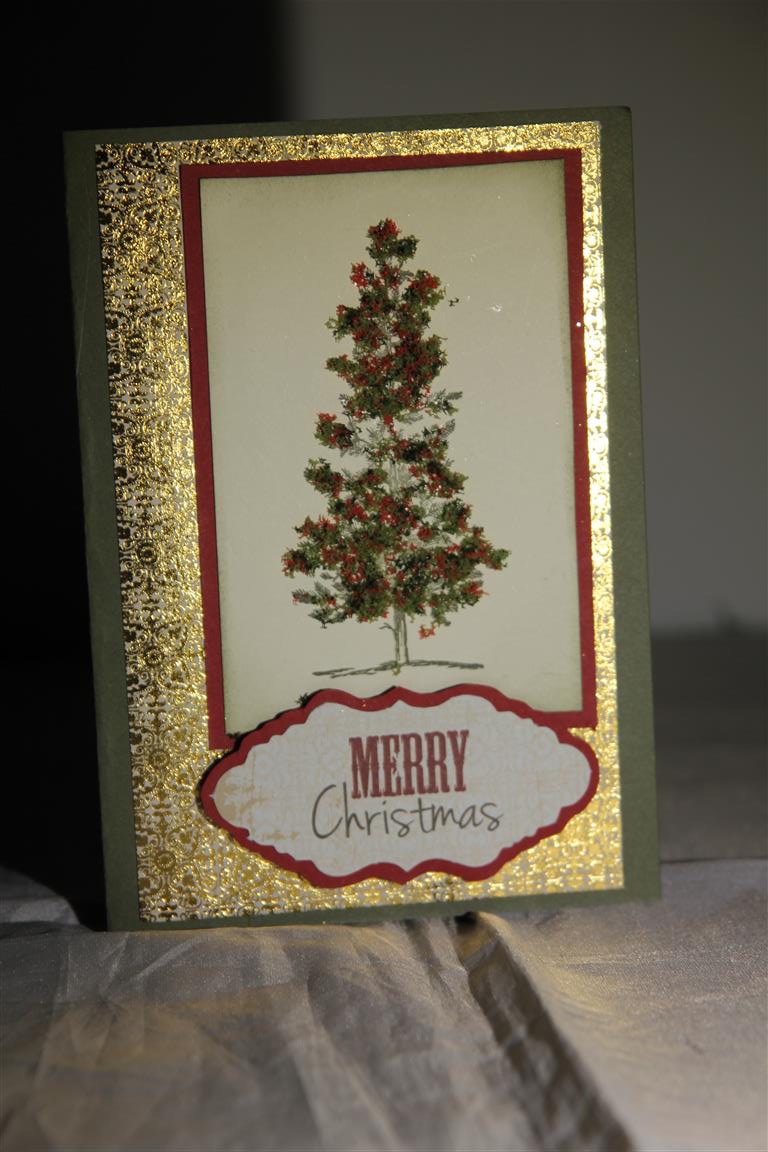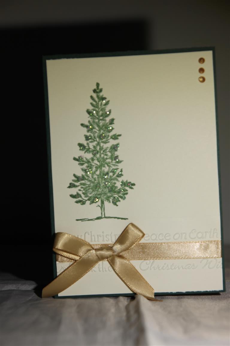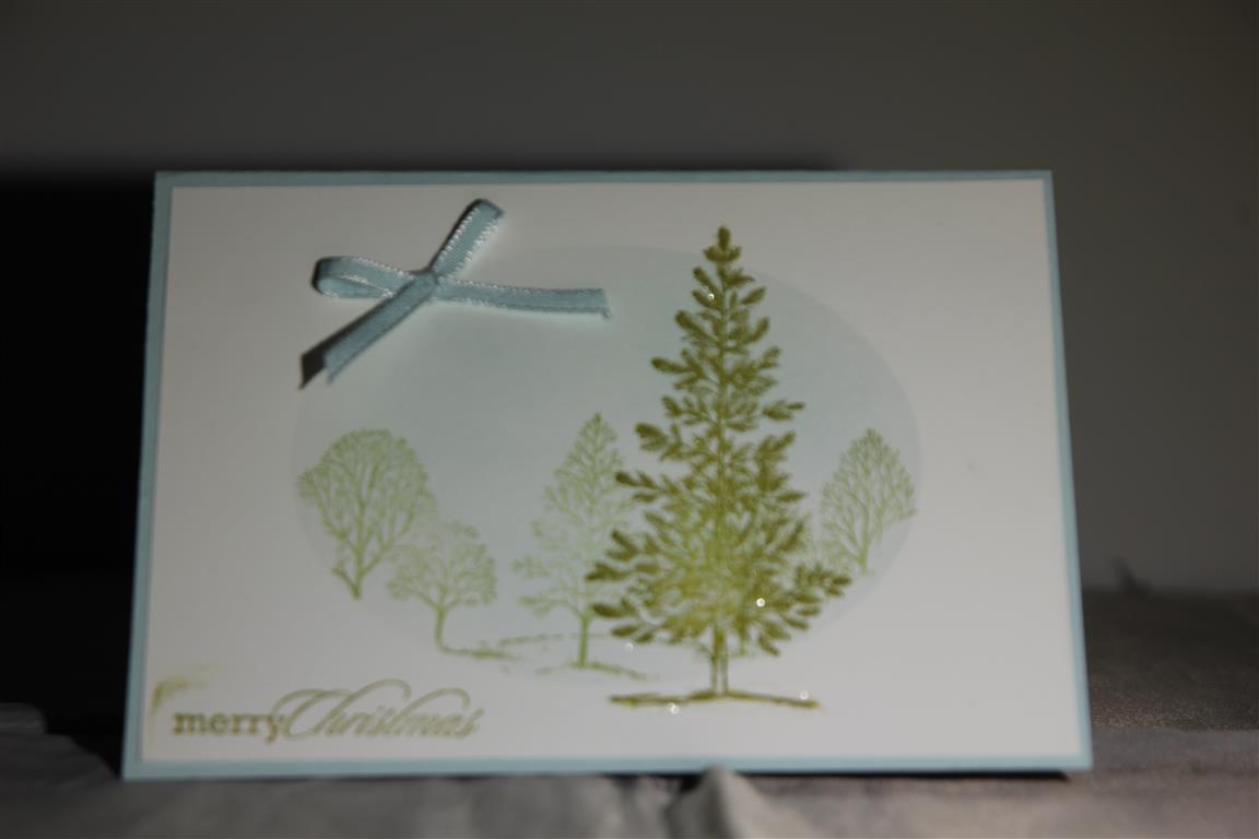 Three cards today, all made with stampin up cardstock, and stampin stamp set called Lovely as a Tree.These cards were experiments, to see how I could use normal stamp sets for christmas makes. The top card used some kaisercraft patterned paper from the Yuletide collection, and I stamped the tree, dotted it with glue and added some Flower soft to it, for a bit of texture.For the second card I inked through a negative piece of cardstock which I had die cut an oval, then with the negative piece of cardstock still in place I stamped the row of trees,removed the mask and then stamped the single tree.The third card was embossed along the bottom, ribbon wrapped around it,and tree stamped and dotted with some kindyglitz.I am off the the craft room now to make a start on my december lessons. I have some great paper for teen boys cards and some beach themed cards and lots of ideas running around my head, so let the creating begin! til tomorrow….