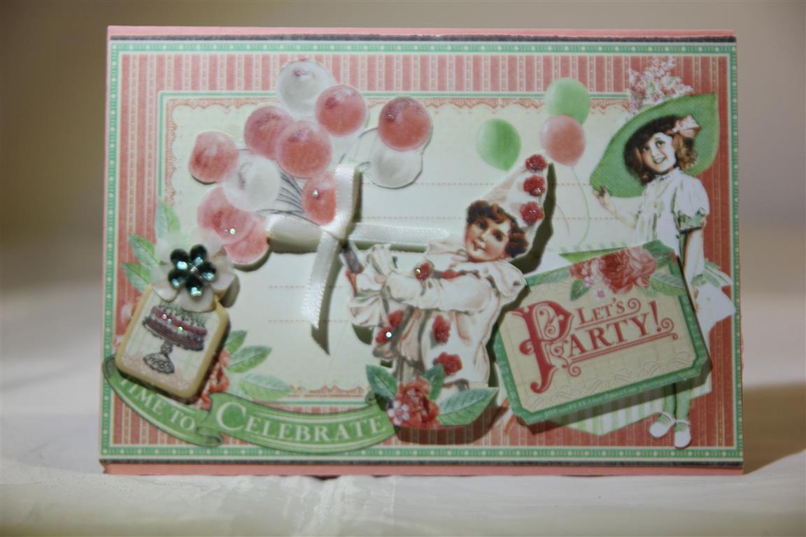 An anniversary card and a generic type lets party card today made with Graphic 45 Time to Celebrate.both cards have an amount of fussy cutting, and the top card has seam binding, the bottom card just a small ribbon bow around the balloons.I have one more class for January left to set up this weekend, and then I think it might be beach themed cards as the weather has been very warm here and all thoughts are on cooler places! til tomorrow….