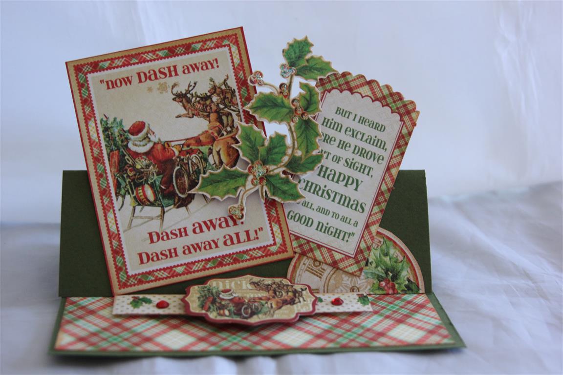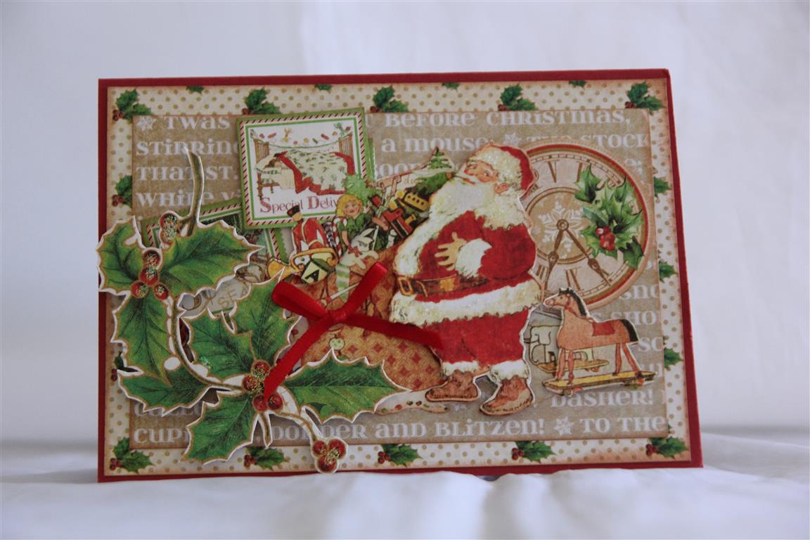 Three more cards made with graphic 45 T’was the night before Christmas paper collection. these have all been made with family members in mind, and tonight I must write them all out and get them in the post!No more embellishing other than kindyglitz and a ribbon bow needed with this paper ( and of course some fussy cutting!) Til tomorrow….