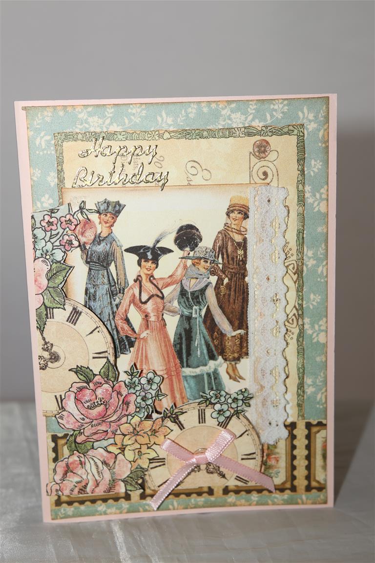IMG_5164 (Medium)IMG_5165 (Medium)2 more card I made with Graphic 45 A ladies Diary and I also used some Graphic 45 baby to bride on the bottom card for the matting.there is a stampin up vintage brad on the bottom card and a bit of fussy cutting. The top card has some lace and ribbon as well. The end of the working week for me, and I am so looking forward to 3 days off! Til tomorrow….