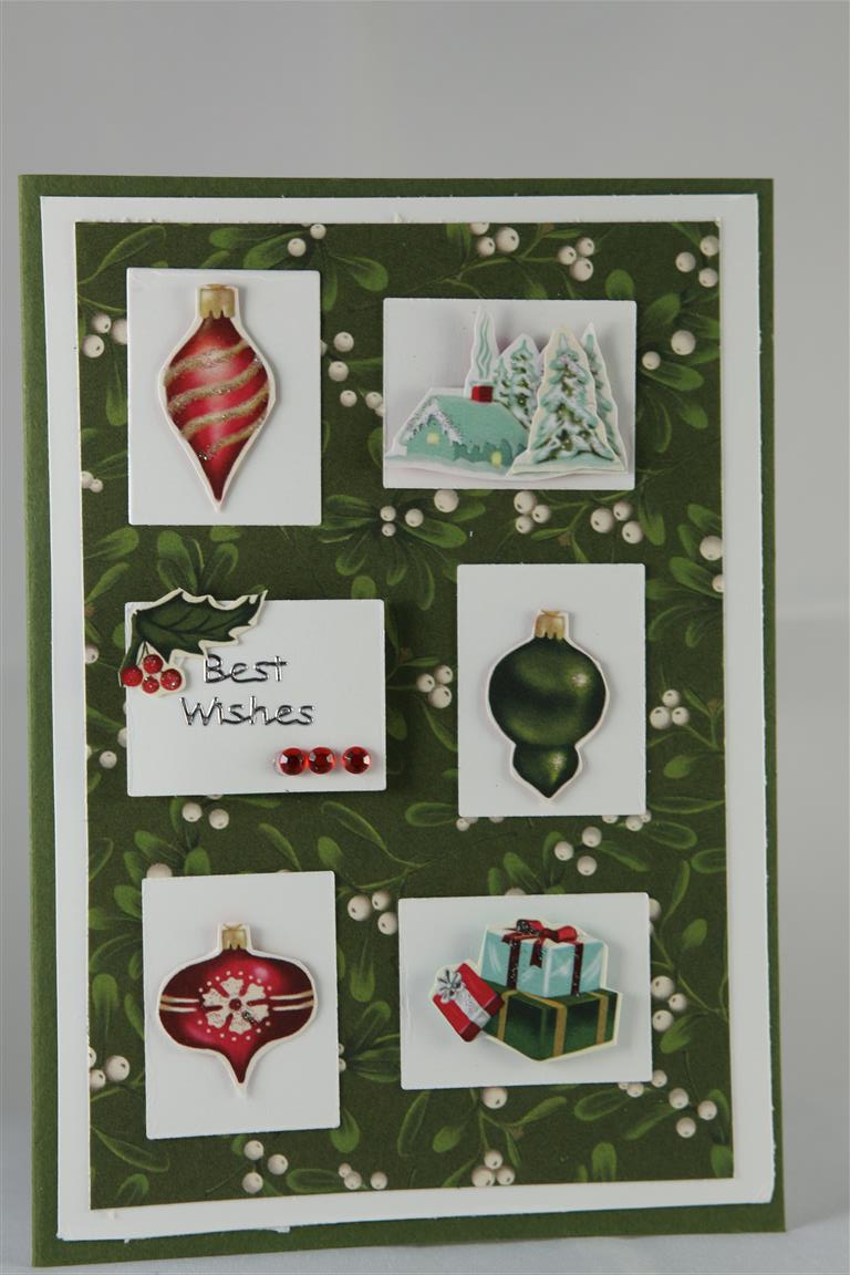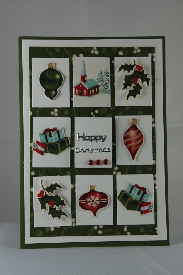 After I had made a few of the previous card ( with the window die-cut) I was left with lots of little white square off cuts, and never one to miss an opportunity i came up with these two cards to use them up. I fussy cut lots of little images from the Stampin Up home for Christmas paper,and arranged them on the squares. Some I left flat and some I mounted with 3d foam pads. A really easy way to use up the scraps! Great class today, we did gate fold cards using the gorgeous kaisercraft silver bells paper, and all the ladies enjoyed themselves, always a good thing! Til tomorrow….