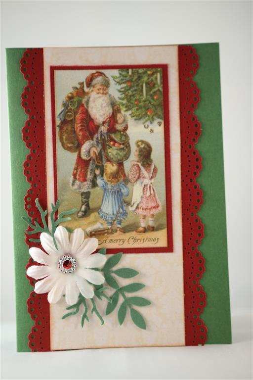 I am procrastinating today, I have been preparing a December lesson, but something is not going my way, so I have taken a break, and hopefully when I return to the craft room all will fall into place! Todays cards ( and rtomorrow too) are all made from a sheet of vitage images that I purchased from Kaszazz. I really made these ones with whatever was laying on my table, so bits of die cuts, flowers, lace, ribbon bling and punched leaves, scraps of paper. a great way to clear my table, and I like the vintage feel to these ones. Til tomorrow….