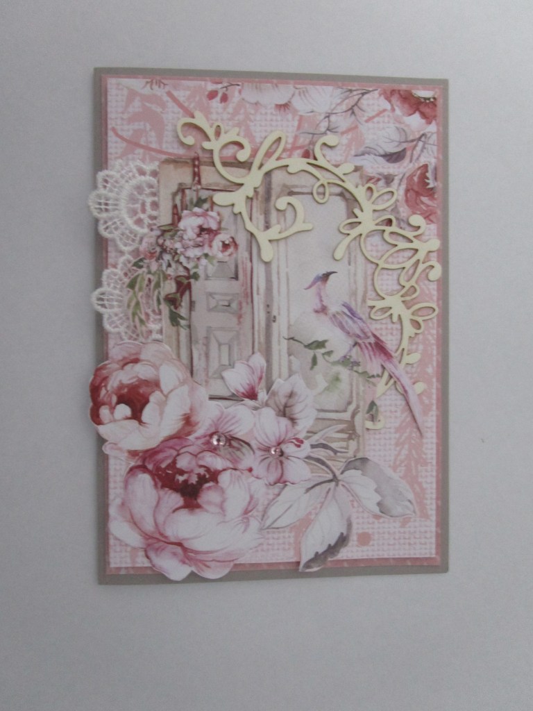 This week I have a few more cards to show you made with Uniquely Creative Serendipity collection. I have also used the matching Creative cuts, and added all sorts of things! Bling, ribbon. lace, string pearls, sequins, chipboard, doilies and I even did a little stamping and stenciling! I have a few new papers to create with and I am looking forward to finding some time to sit down and relax with them! Til next time, stay safe….