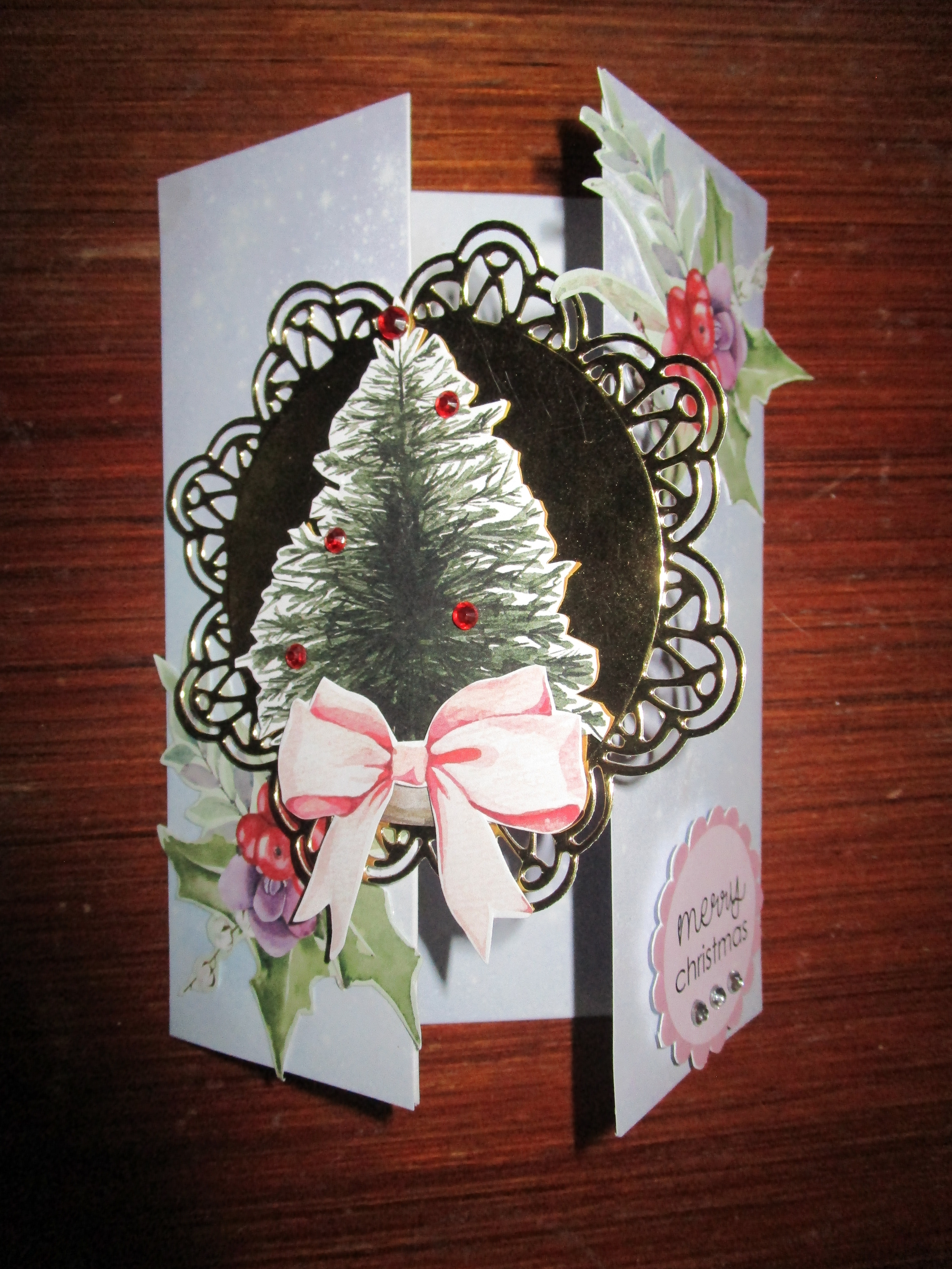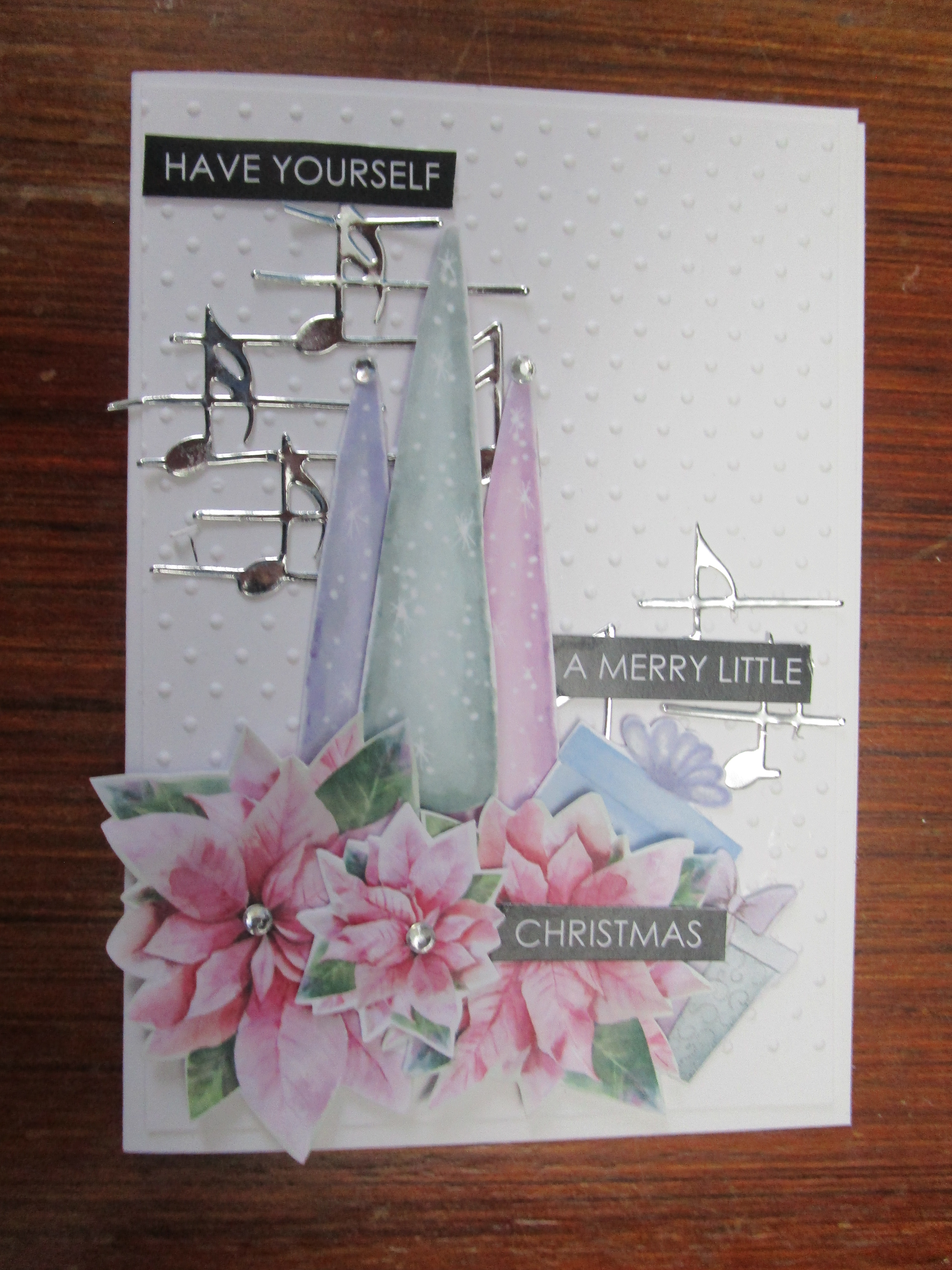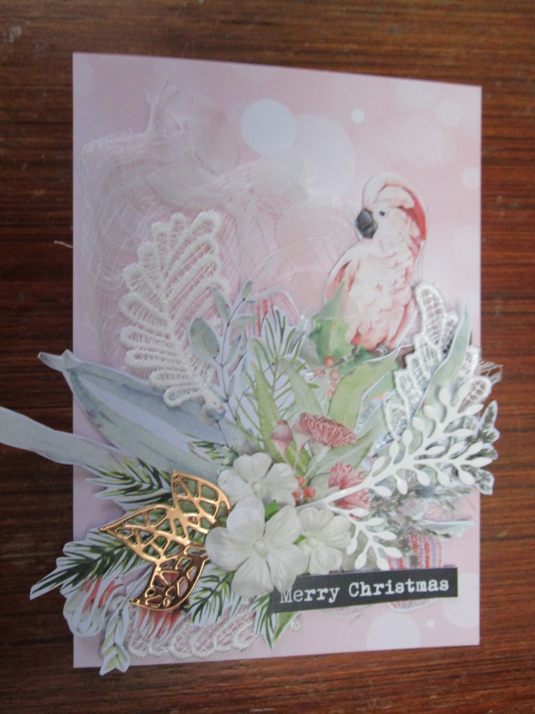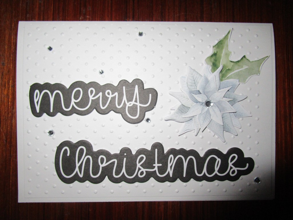 I thought we were ready to move onto a new paper collection, but when I checked my photo files there were these last few cards made with Merry and Magical ( Uniquely Creative) and none of the cards I have made in the last couple of weeks with the other paper collection I bought for this years Christmas card making. That needs checking into! Anyway, we have these few and I have added some stamping, die cutting,embossing and bling to these ones. It’s been a very quiet week around here, and I have even found some time to do a bit of reading and I have finally finished the album I made featuring my two puppies!