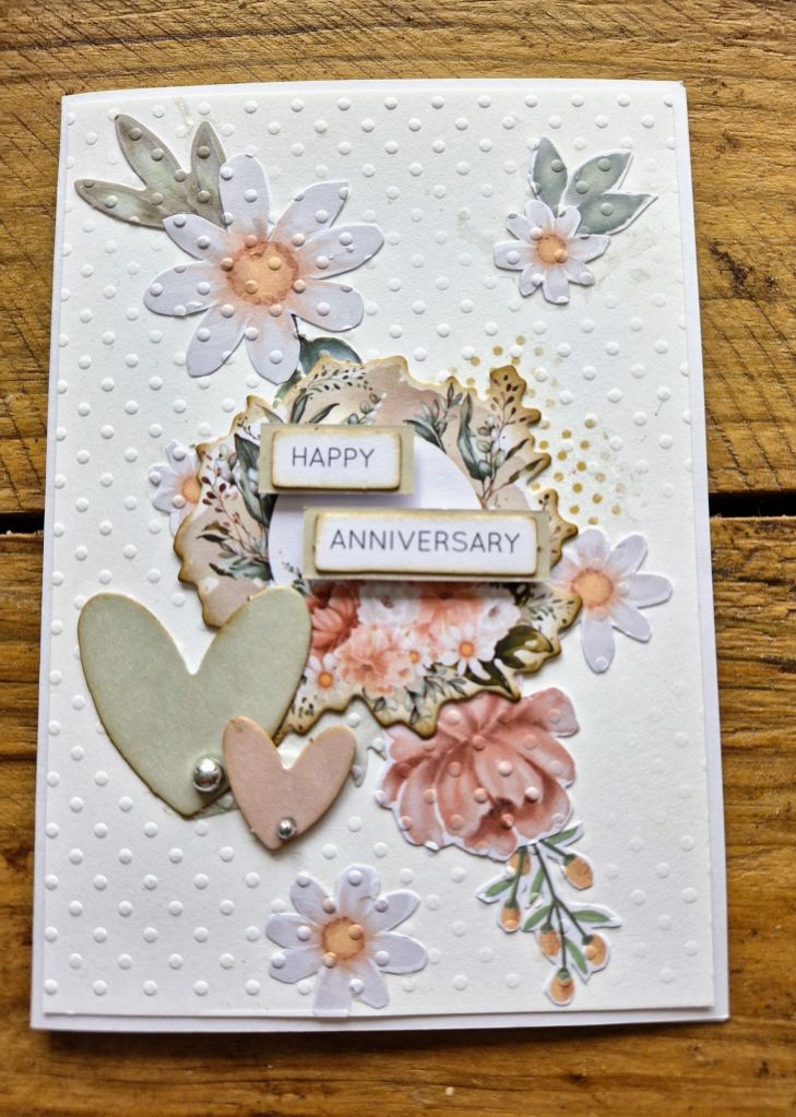 This week, two more cards made with Uniquely Creative paper collection called Gypsy Heart. On the bottom card I stamped a small texture stamp ( brown ink) , stuck a few pieces of fussy cut flowers before running the whole piece through my die cut machine in a Swiss dots embossing folder. A little too warm here just now to get into the craft room …hopefully it cools down soon! Til next time, stay safe..