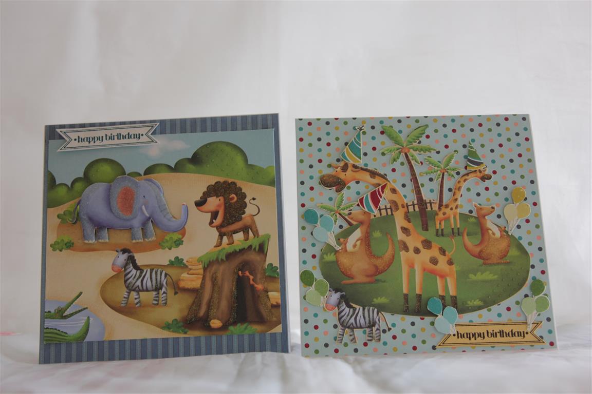 While I was on my quick break a few weeks ago, we stopped in a small town for afternoon tea, and found a scrapbooking store to visit – as you do.. and I bought a couple of sheets of paper made by a company I hadn’t come across – Hobby Fun Co.,Ltd. One sheet was full of animal images, and the other sheet had borders, and bits for fussy cutting. I made 10 cards with these two pieces of paper, and here are 4 of them. For the bottom two cards I used some Stampin Up paper for the background layers,and I fussy cut Balloons and paper hats out of the same stampin up paper.For the top two, I punched a picket fence with a martha stewart border punch,and used kaisercraft papers for the backgrounds.No crafting tonight because i must get all my paperwork in order for the the tax man next week…. Til tomorrow….