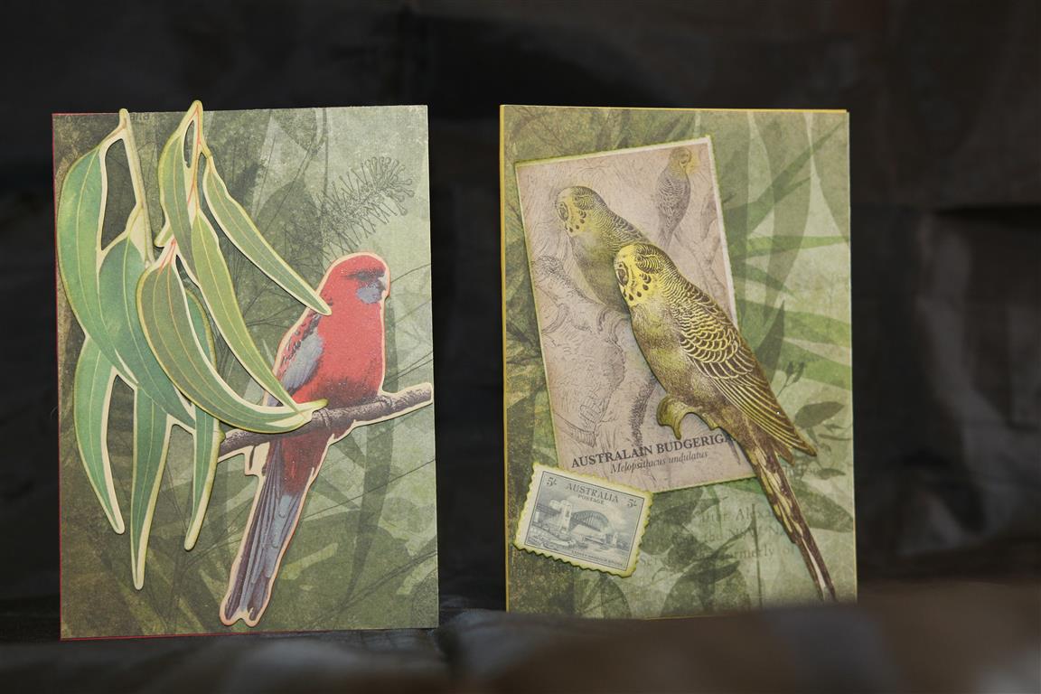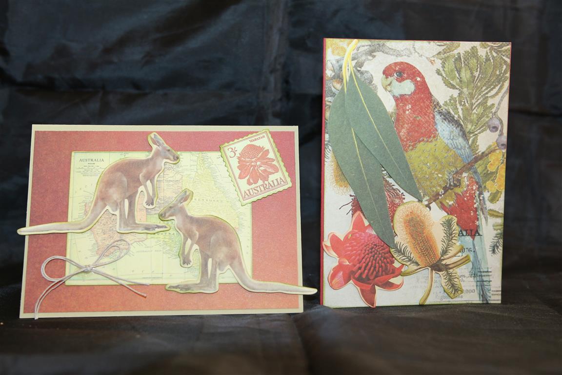 Here are the last 4 cards I made with Kaisercraft Great Southern land papers and collectables. All the remaining bits and pieces are in a bag with some other bits and pieces ready for the craft fair.Speaking of which, I have spent this morning sorting out the boxes, and making a list of cards I need to concentrate on over the next few weeks. Nathan and I also spent some time photoing a lot of cards ready for this blog, so although no crafting today, lots of necessary sorting out has been done!Til tomorrow….