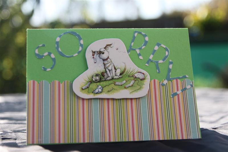Just a fun card tonight! The cardstock is Wild Wasabi from Stampin up, and the paper is from October Afternoon – Thrift Shop. I cut the letters using my new Cricut (I haven’t had nearly enough time playing with it yet ) and the cute dog was a freebie off the front of a craft magazine. Its called Hot Diggedy dog, and the whole set of chipboard pieces were so cute that I tried to source them but they are not available anywhere – they were just designed for the giveaway – a shame -I’m sure they would be a winner.Anyway just a lighthearted post tonight, I have spent the afternoon doing orders, and it’s back to work tomorrow.Til then….