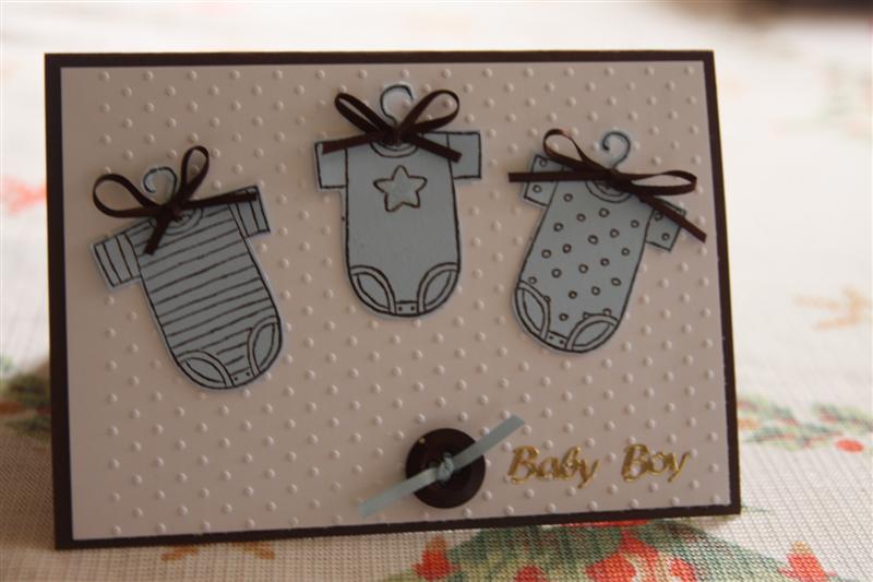 Yes, I am back to Baby cards.My husband came home tonight with orders for 3 baby boy cards. What is it with all the baby boys? By the time I have done these 3 I will have done 9 boy cards this month. I am running out of all things blue, and will have to visit many craft shops to stock back up . Oh dear – what a shame! (giggles…)Tonights card is one I did which a lady has bought already for a Baby shower. It’s appropriate because it can be used for either a girl or a boy. I used Bazzill cardstock, Kaisercraft Little man paper and Stamp, and buttons from my craft supply.Til Tomorrow….