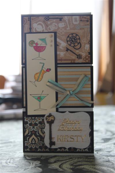 Tonights card is a 21st that I did for an order. I used Stampin Up Cardstock in Baja breeze and black, Kaisercraft Le Chateau paper collection and key, and stampin up stamp set – Cheers to you. The ribbon was from my supply.Tonight I am back on xmas cards, and just glad that the working week is over for me – Yay – ! Til tomorow….