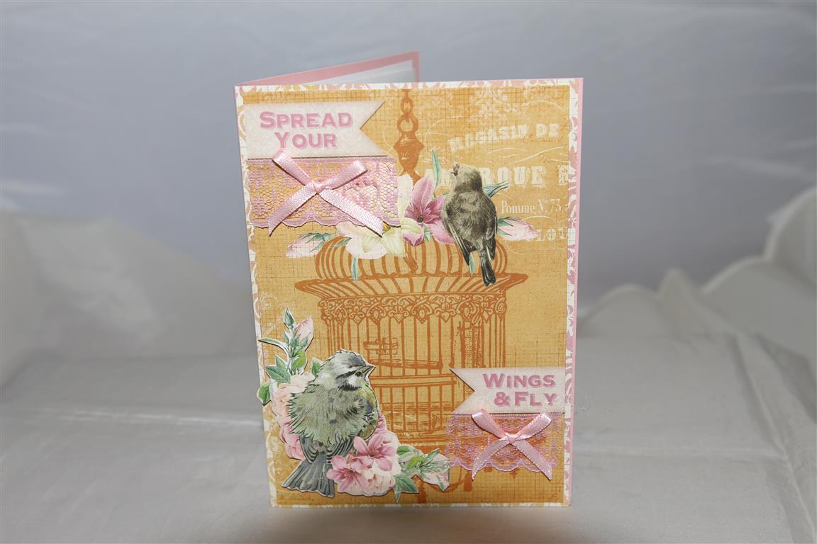 Hello and welcome to my new subscribers! Today we are looking at the last of my Bo Bunny Butterfly Kisses cards ( for now..I love this paper collection and will be re visiting it soon, but for now I have to make some Fathers day cards). This one is my favourite of the series because I have gone back to basics, relying on the paper to do all the work! The base is stampin up cardstock, and the first layer is a piece cut from one of the 12 x 12 sheets. The next piece is from the matching noteworthy pack, and I fussy cut some pink / apricot frondy bits from more paper and added a butterfly collectable and ribbon bow. Today i am teaching a class over at the retirement village,so i must go and remind myself what we are actually doing and gather all my bits and pieces together! Til tomorrow….