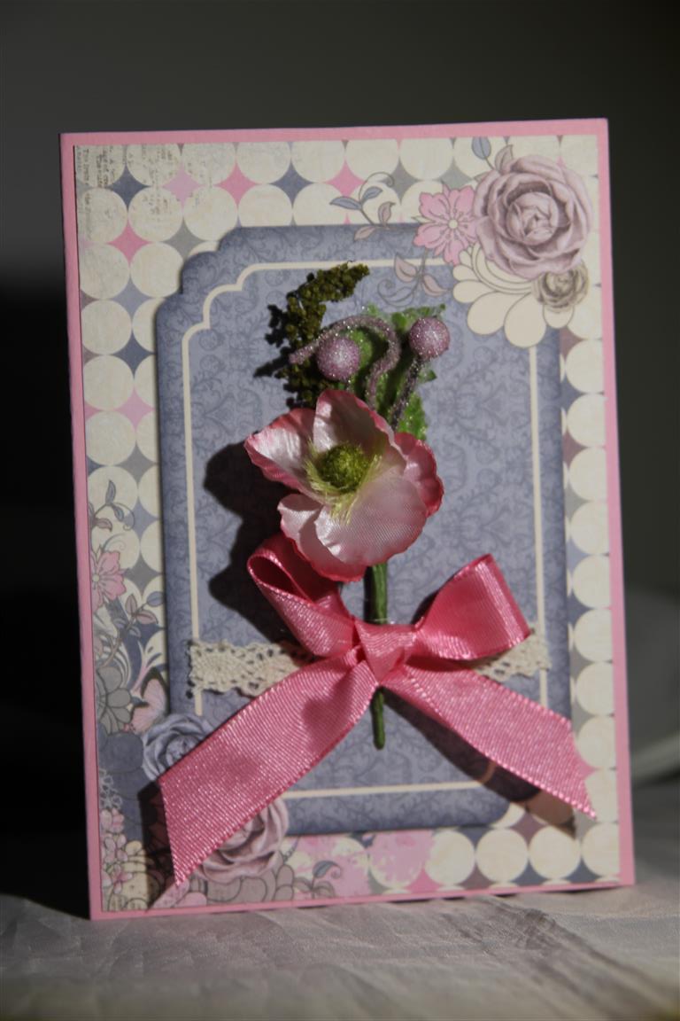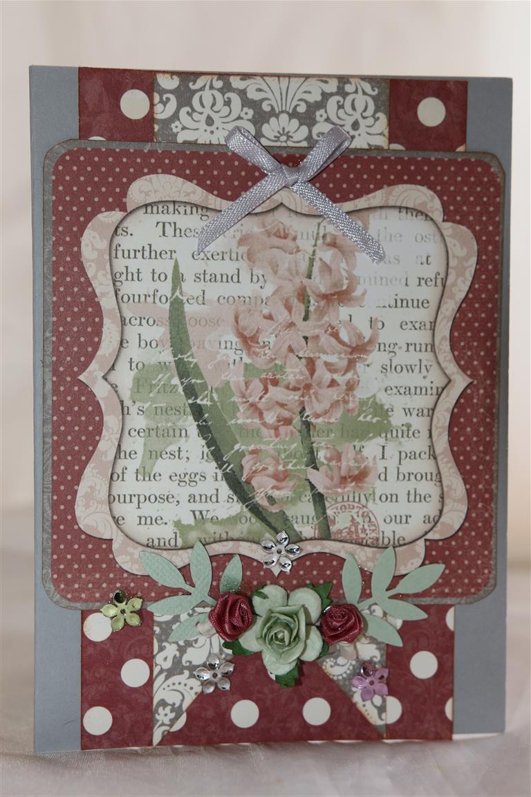 Todays card is made with Bo Bunny Madeleine paper. I love the soft colours of this paper, and here I have done a bit of fussy cutting and layering and added some lovely satin ribbon a pearls to finish. recently in the craft room I have been gathering my Christmas supplies to make a start on Christmas cards, but it must be too early even for me because I just keep procrastinating and I haven’t achieved anything. I will give it one last go this weekend and if there is no results i will leave it for another month! Til tomorrow….
