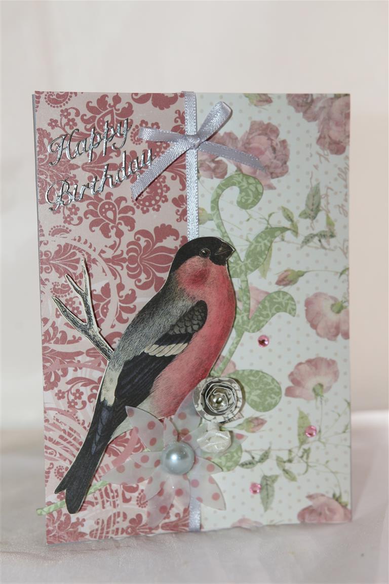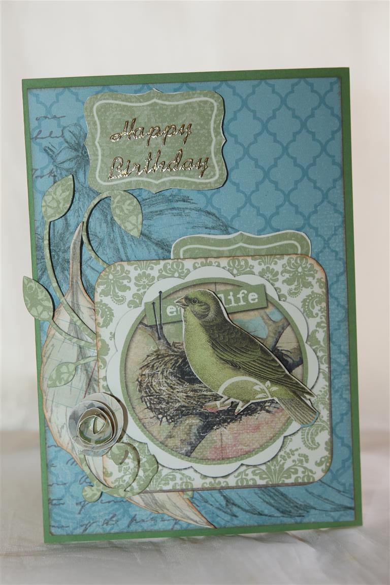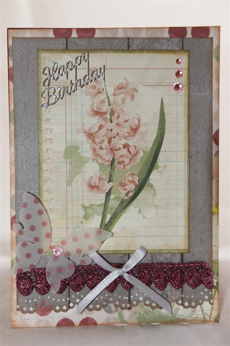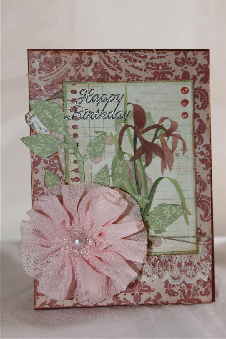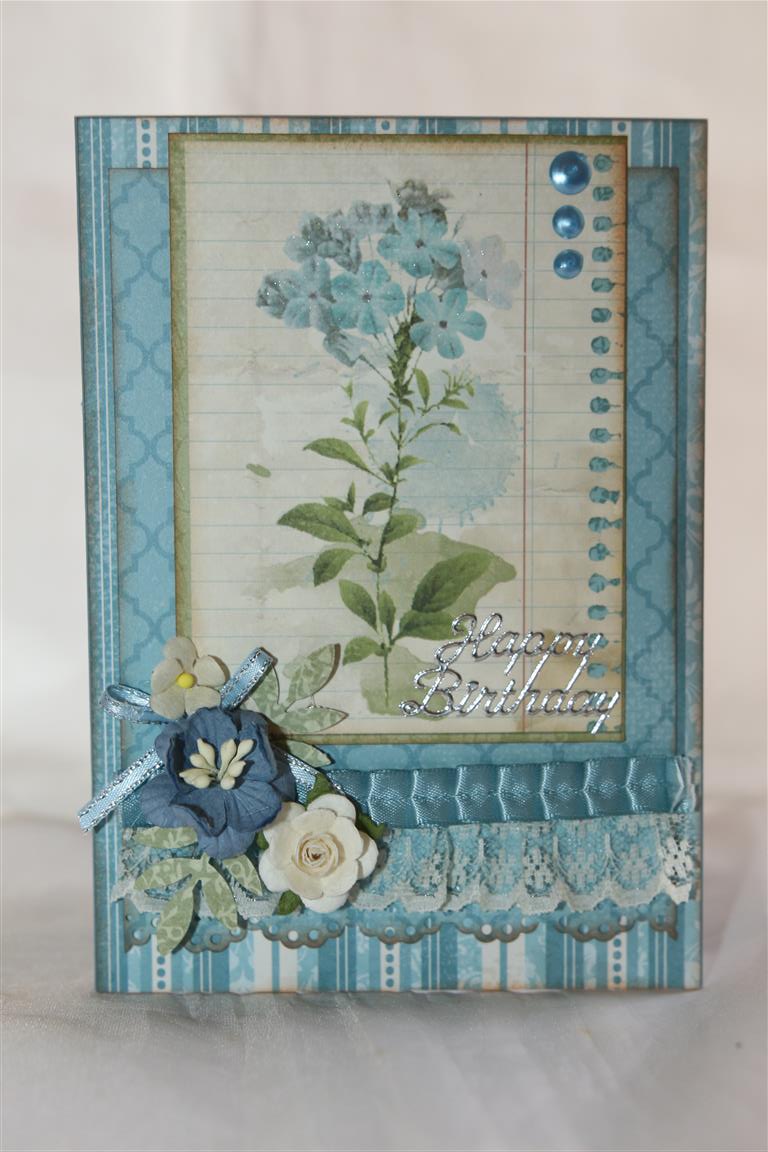 there was going to be two cards today, but the computer has something against uploading my photos, I am blaming the weather,it’s been very stormy today, hopefully tomorrow it behaves itself! So, todays card is Bo Bunny garden journal papers, with some assorted flowers,punched leaves, and a bit of bling. I inked all the edges with tea dye distress ink. Til tomorrow….