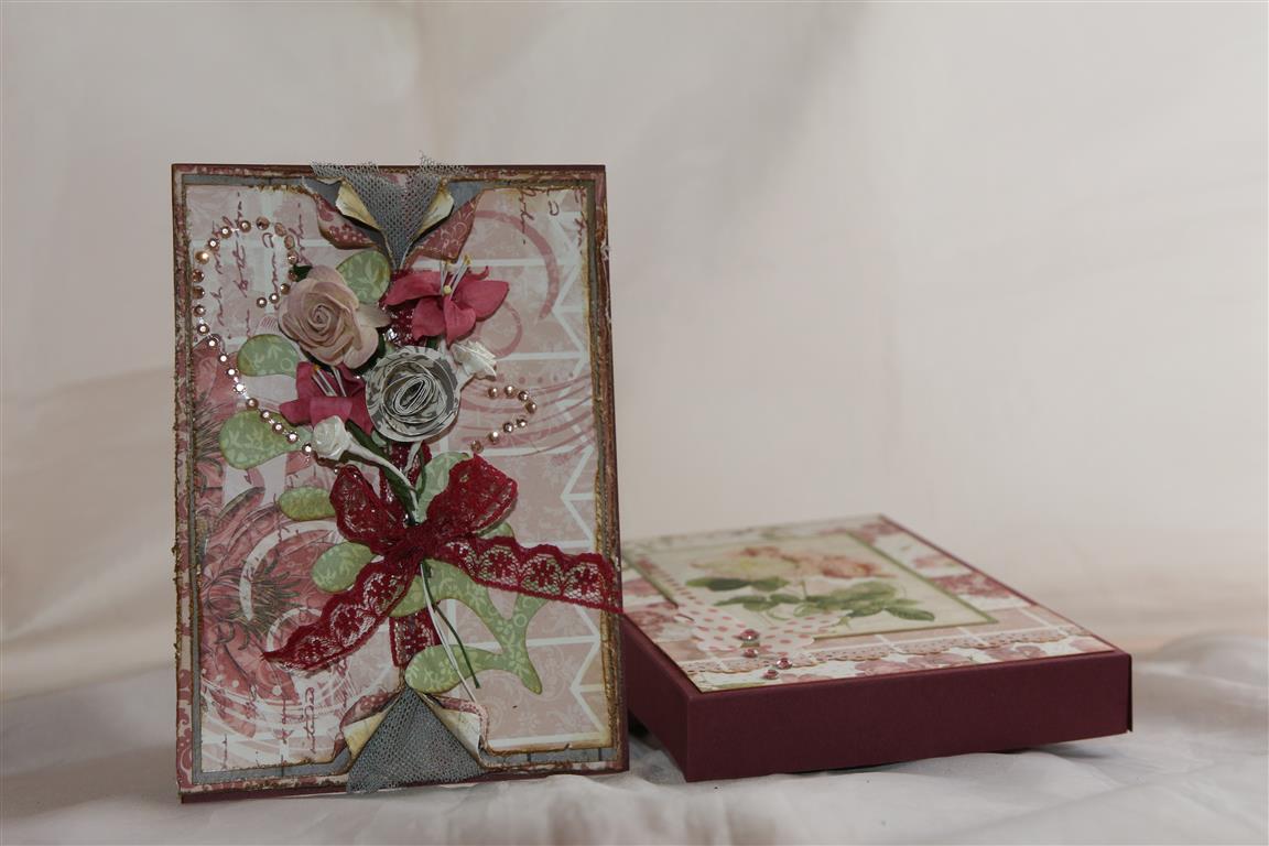 This is the last two Bo Bunny garden Journal cards I have made – No doubt there will be more at some time, but todays cards are the last for now. The blue one uses a kaisercraft dres form die ( I love it) and the bottom one is an experiment in shabby chic style, so lots of ripping of paper ( so hard for me to do) and distressing and inking, mixed with lace, tulle, ribbon and bling. I made a matching box to fit it into.Today is a great day..i finally have a day where I can spend a great amount of time in the craft room, and just as well as it’s only 4 weeks until my 3 day craft fair, so it’s all about making enough cards to sell!Til tomorrow….