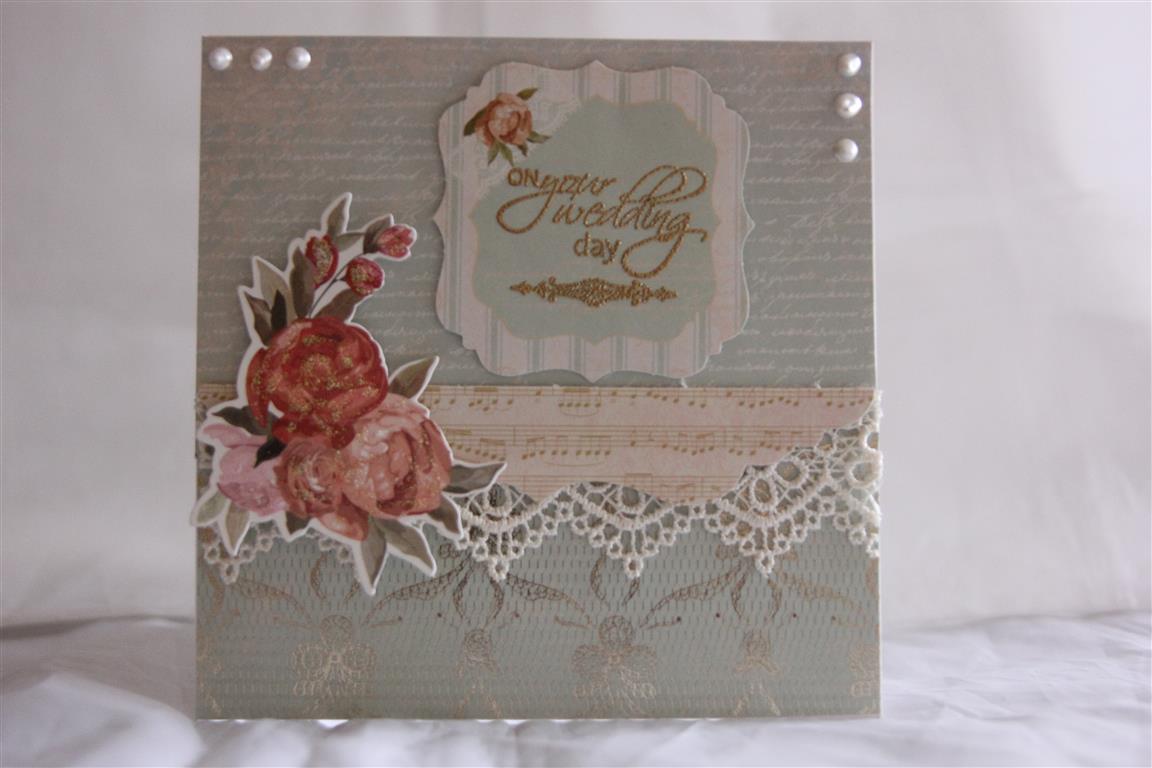 I don’t often use patterned papers for wedding cards – I usually like quite plain cards with a little cuttlebugging for these type of cards, but this paper is from Kiasercraft and called On This day so I thought it was wholly appropriate for a wedding card! I also used the matching collectables, and the stamp set that is released to match this collection. I heat embossed the sentiment with gold embossing powder, and added a little lace and opal liquid pearls. I am now all organised for my craft fair this weekend, and getting quite excited – can’t wait to meet so many fellow crafters in one place..Til tomorrow…