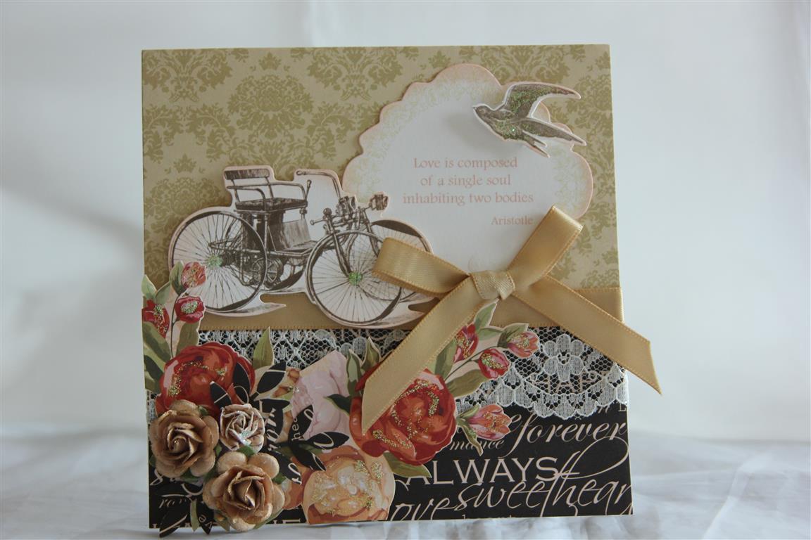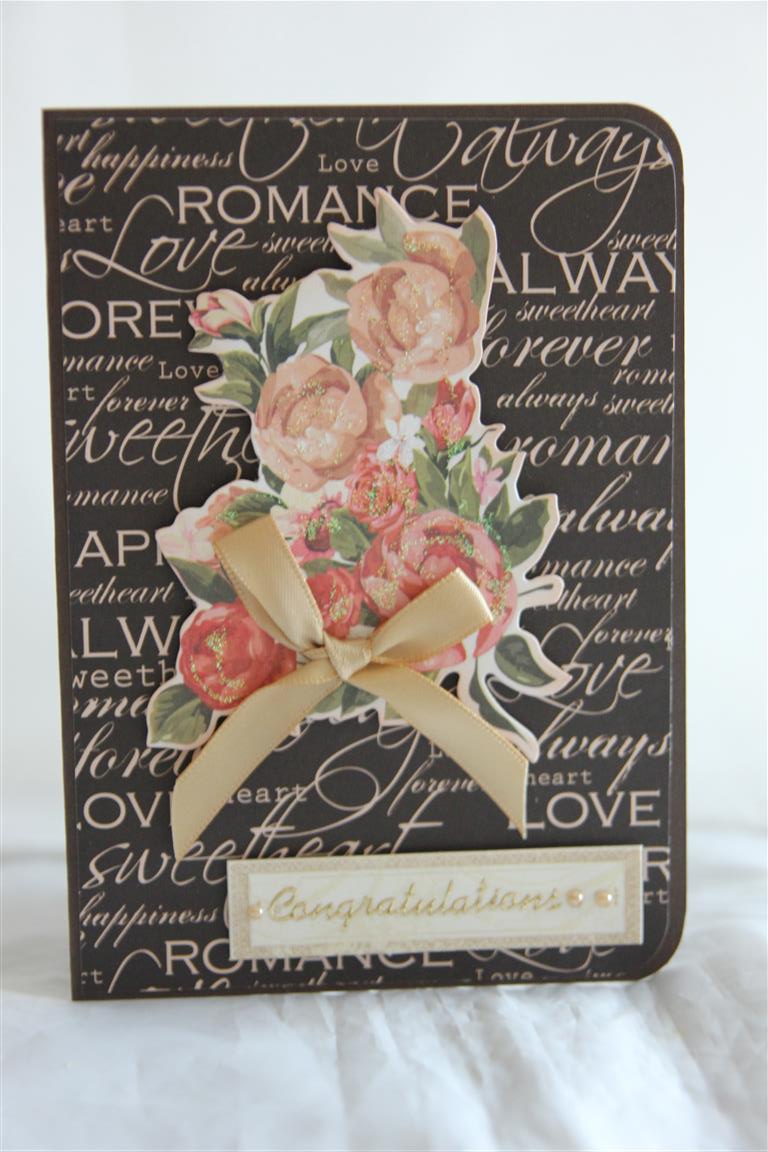 again this card could be used for a few different celebrations – Anniversary, wedding or engagement. The paper collection is Kaisercraft on this day, and I have used a bit of a 12 x 12 sheet for the background, and some collectables and ribbon. I rounded my corners on this one. quick post tonight, as tea is cooking as we speak! Til tomorrow…..