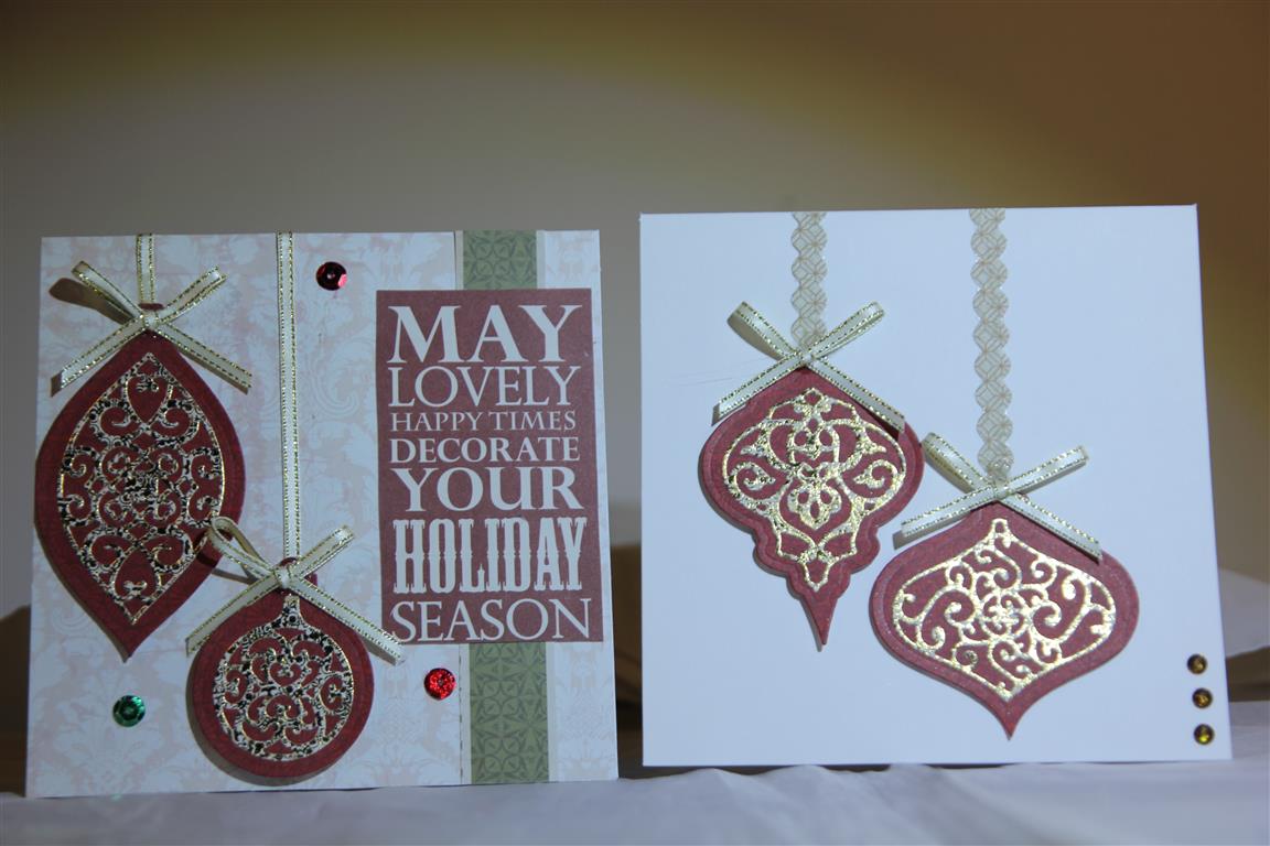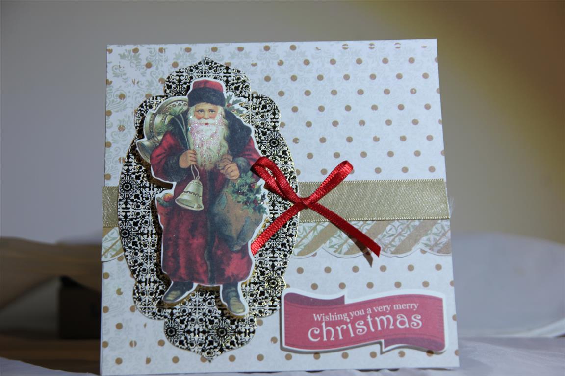 Kaisercraft yuletide collection, using the 12 x 12 papers, and concentrating on the cream /gold colour combination, which makes a nice change from the green/red combo.I also used the matching collectables, and some ribbon and lace for these ones.I am off to mums this afternoon, taking lots of bits with me and I am going to make a huge push to finish the order for 50 xmas cards. Til tomorrow…..